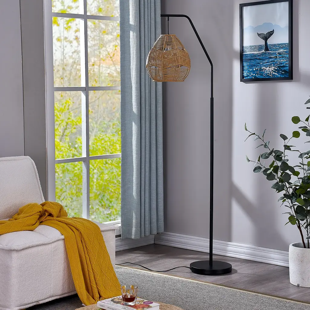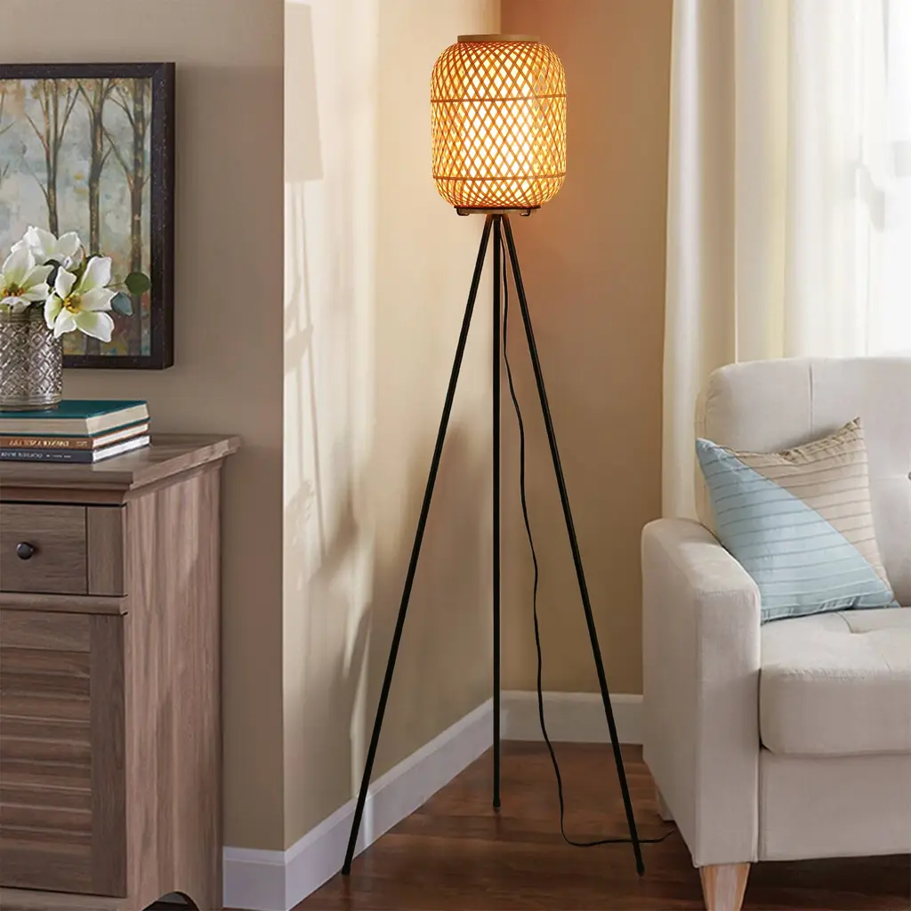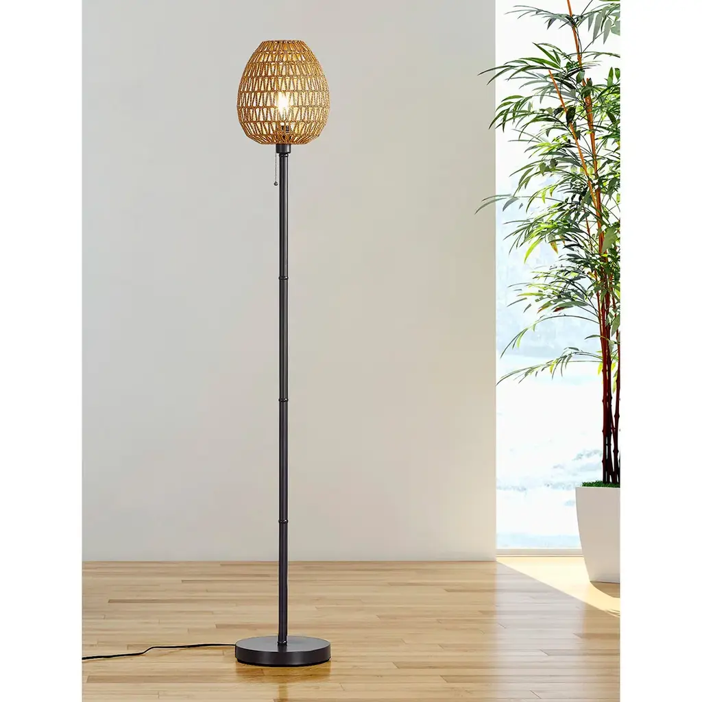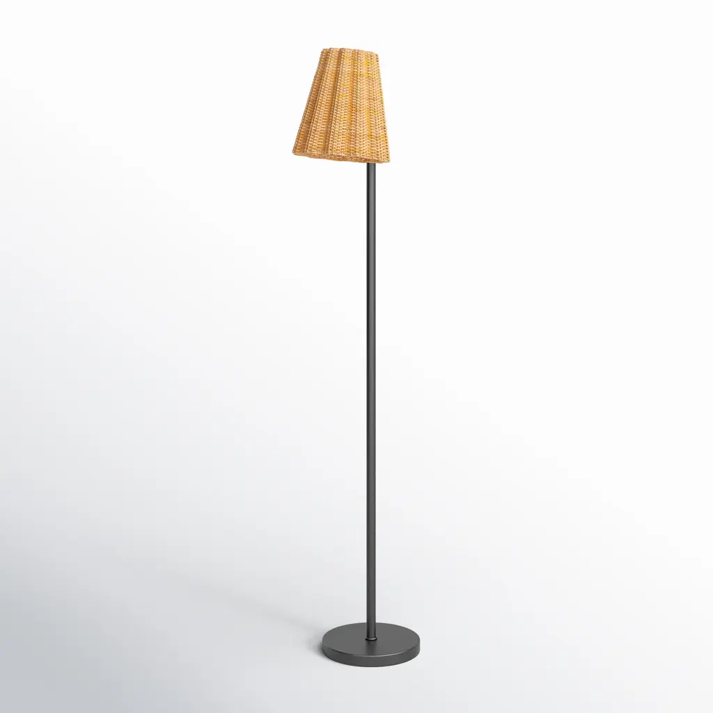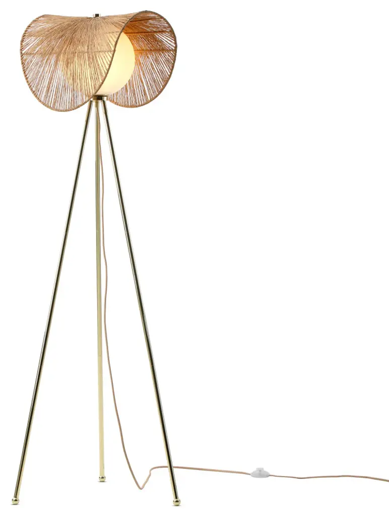 The Latham Floor Lamp from Alder & Ore combines creativity and exceptional functionality. It’s crowned by a curved shade of rattan that has a ribbed appearance, keeping partially visible a secondary shade of glass illuminated by a brilliant LED. This floor lamp is supported by a tripod-style framework of sturdy aluminum with spherical contours and the end of each leg for maximum balance. A push-button inline switch puts you in control of this Bohemian, contemporary fixture.