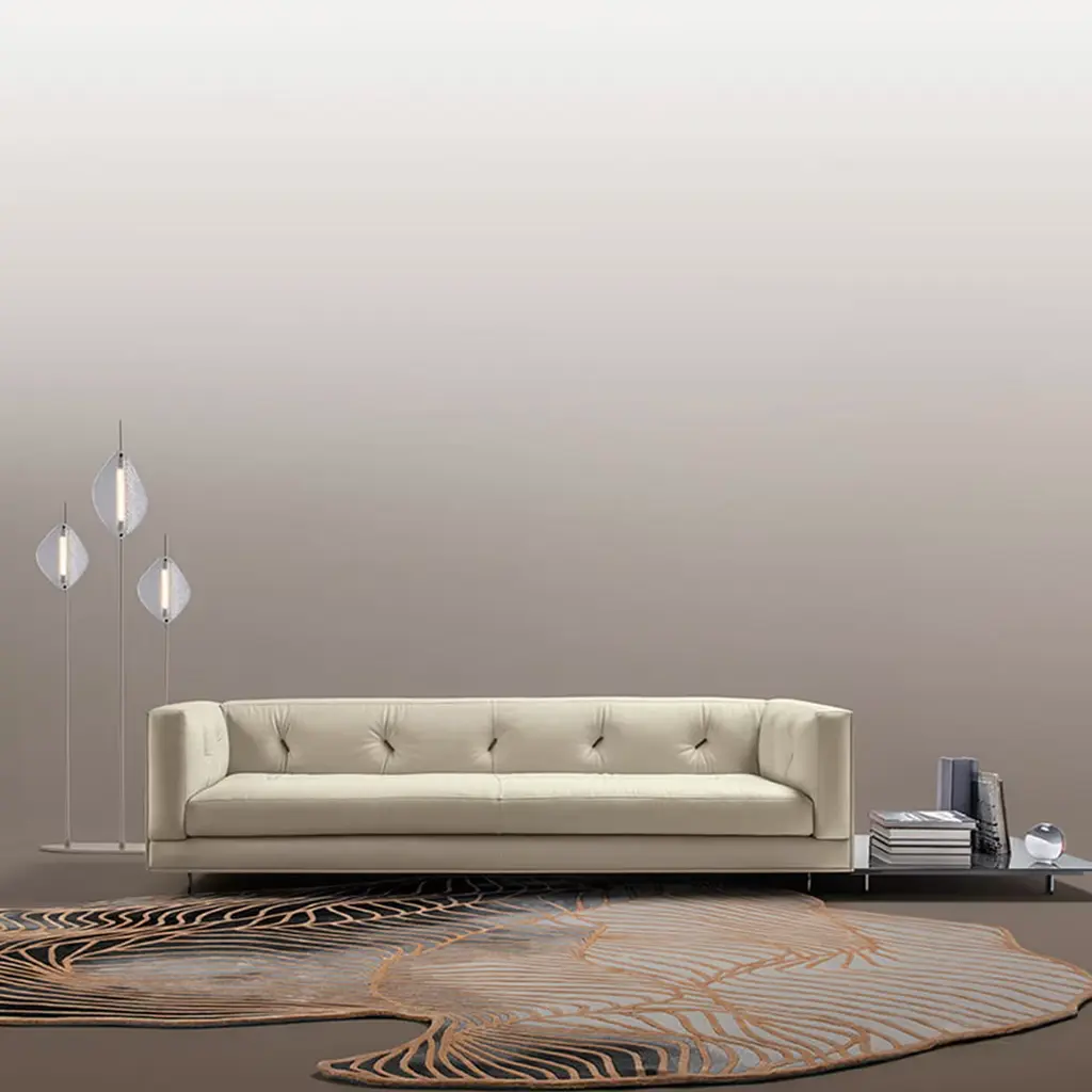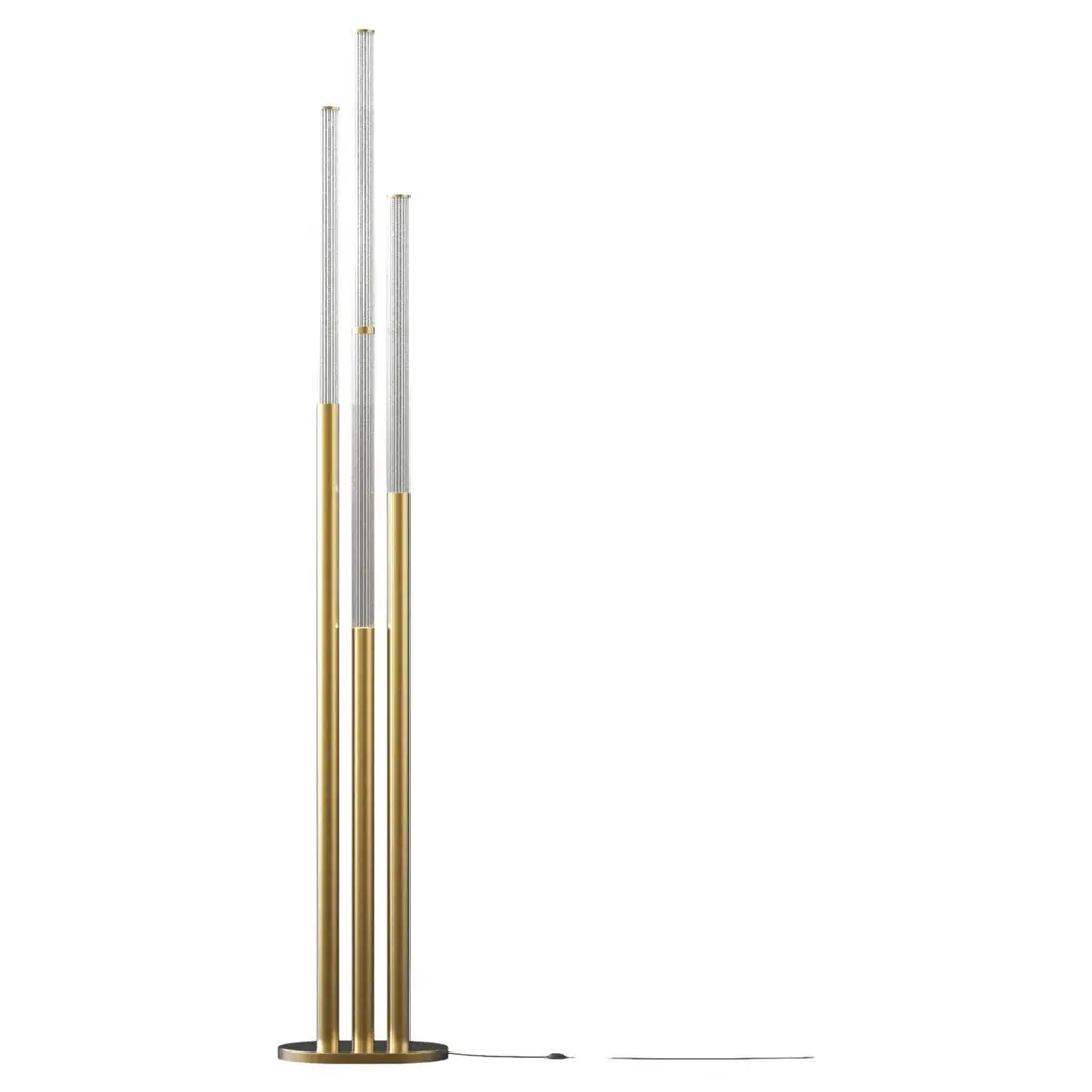 An elegant and sophisticated addition to a contemporary interior of both private and contract nature, this floor lamp from the Latifoglia Collection is distinguished by three leaf-like shades handmade of blown glass, supported with essential metal stems, rising from a metal base. This piece includes a black electric cable with a clamp and a class I driver plug (220-240 V - 50/60 Hz IP20 5W - 24V). Please contact the Concierge for further details.