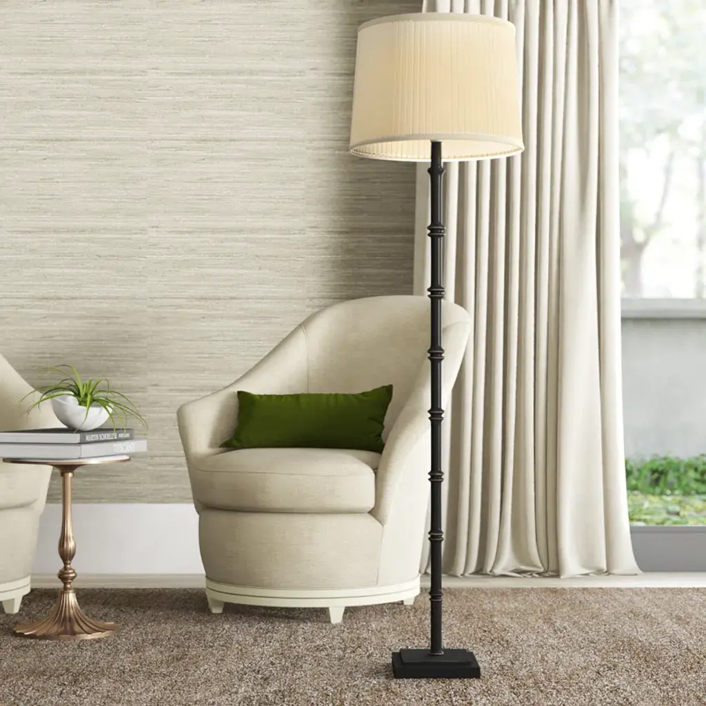Our Lauderdale floor lamp features metal bamboo turnings with a hand-applied black crackle finish. We accent the turnings with a touch of gold highlights.