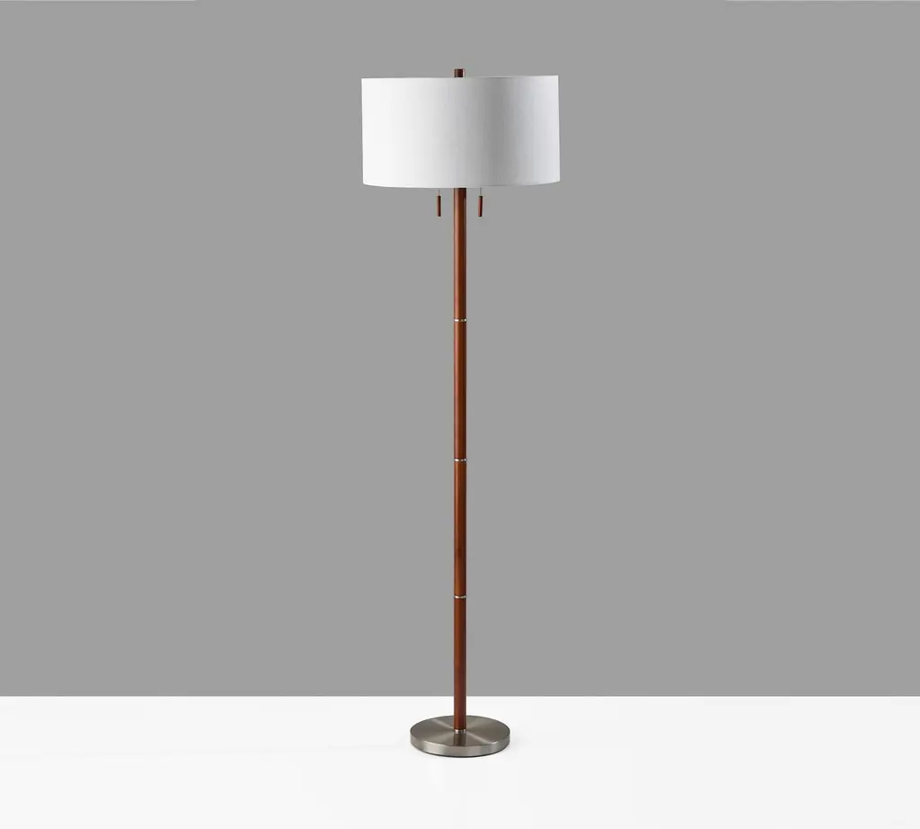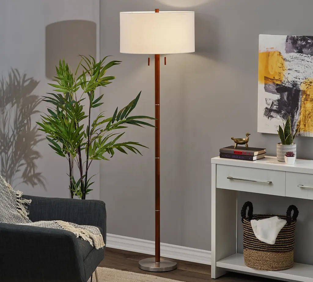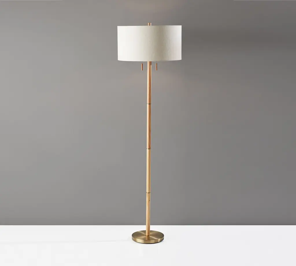 Nodding to nature, this floor lamp introduces an organic sensibility to your interiors. Laurin is crafted of a textural rubberwood column accented with a crisp metal base and bands, an intriguing material mix that lends it the look of bamboo. Topped with a textural fabric drum shade paired with elegant rubberwood pull chains, it casts a soft glow that’s perfect in a seating area or bedroom.