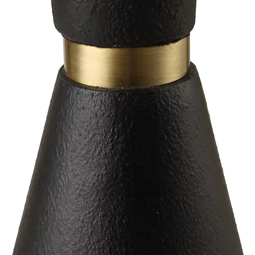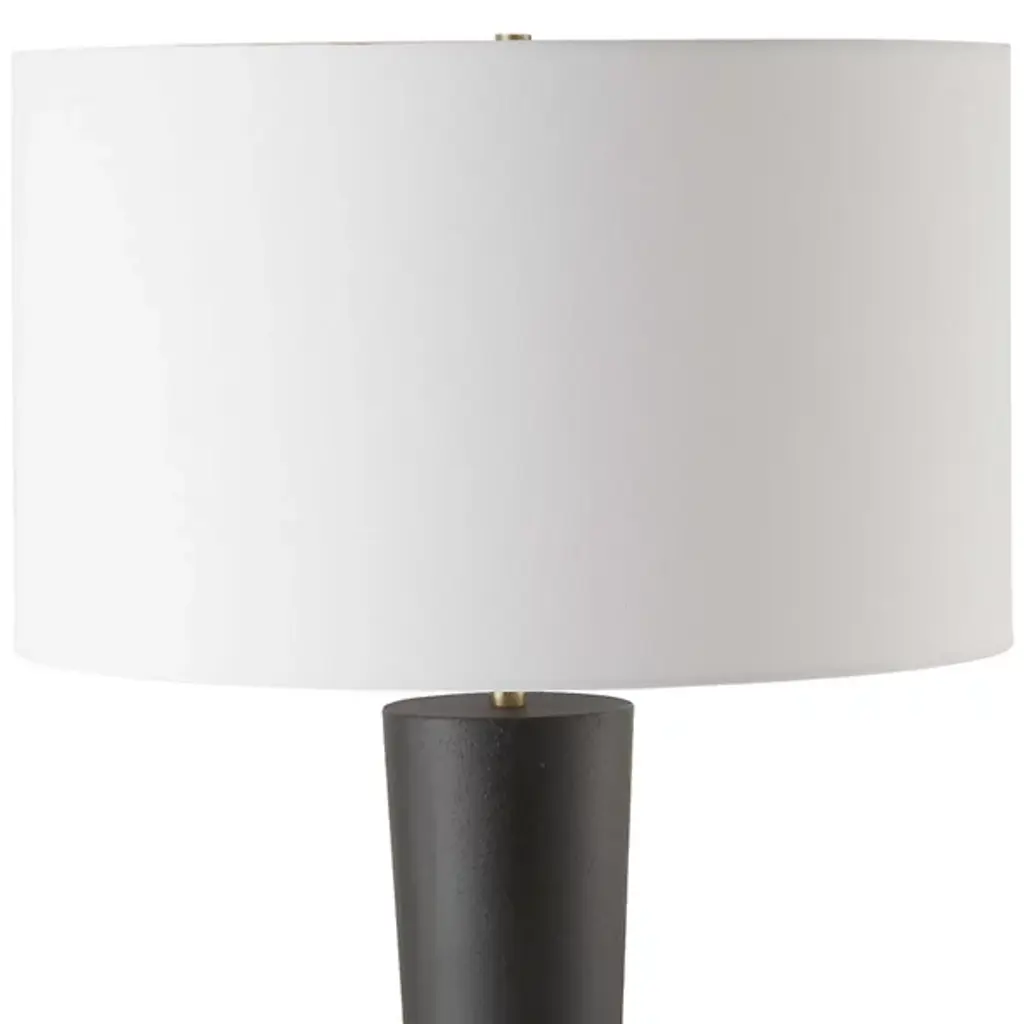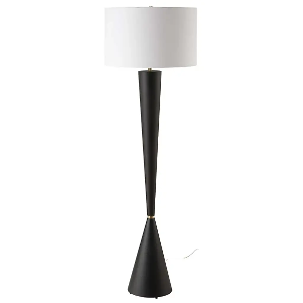 The Layla Floor Lamp from Uttermost beautifully marries Mid-Century Modern and Transitional styles with its tapered iron base in a subtly textured aged black. The antique brass-plated accents add vintage charm, while the white linen drum shade provides a clean contrast, scattering an even glow around the fixture. Designed by David Frisch, this elegant lamp enhances any room with its sophisticated blend of classic and contemporary elements, perfect for adding a refined touch to your décor.