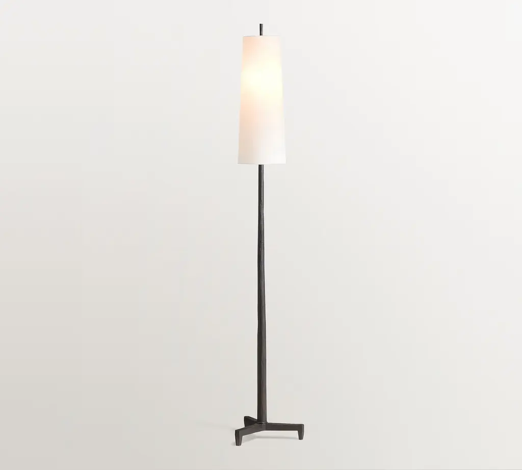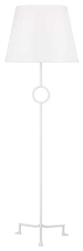 This sleek design pairs three interlocking brass rods and an empire linen shade for a simple-yet-chic look. Trimmed with a golden finish. Hardwired.