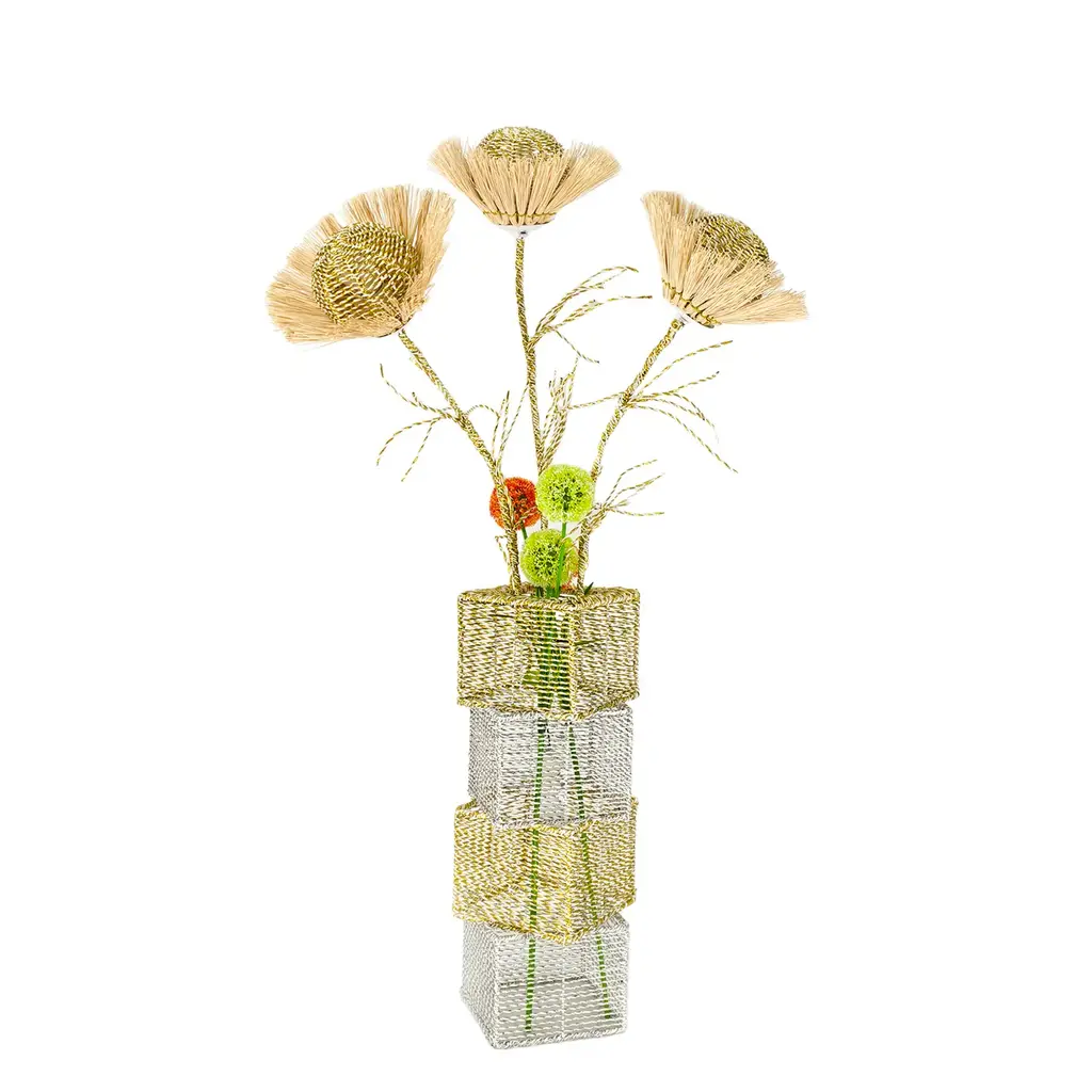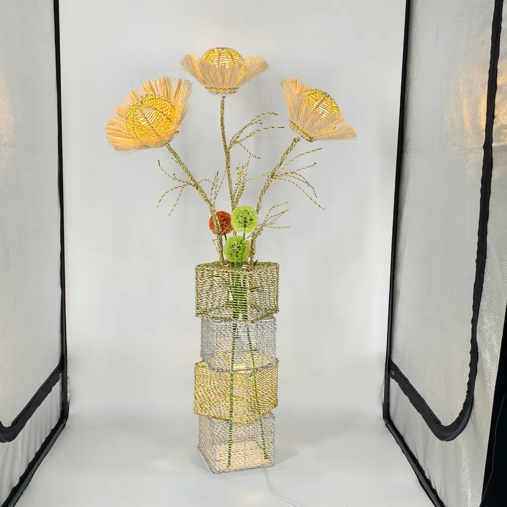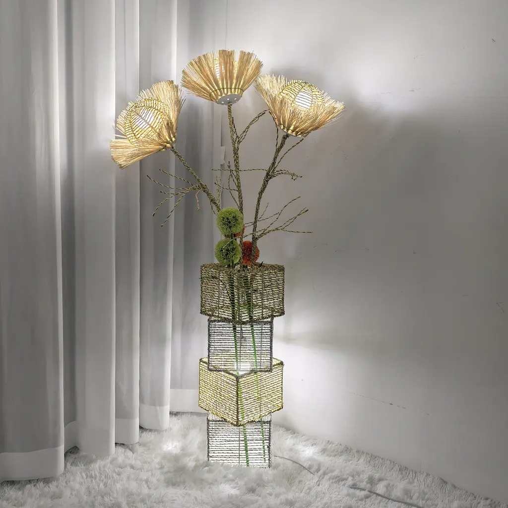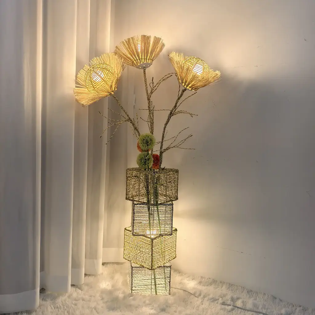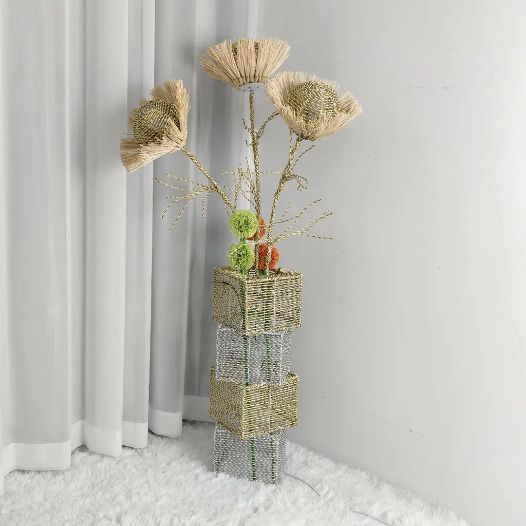 Led Bulbs Floor Lamp Pastoral Style With Hand-Woven Flower - W 10.83" X H 51.18" - Multi-Colored