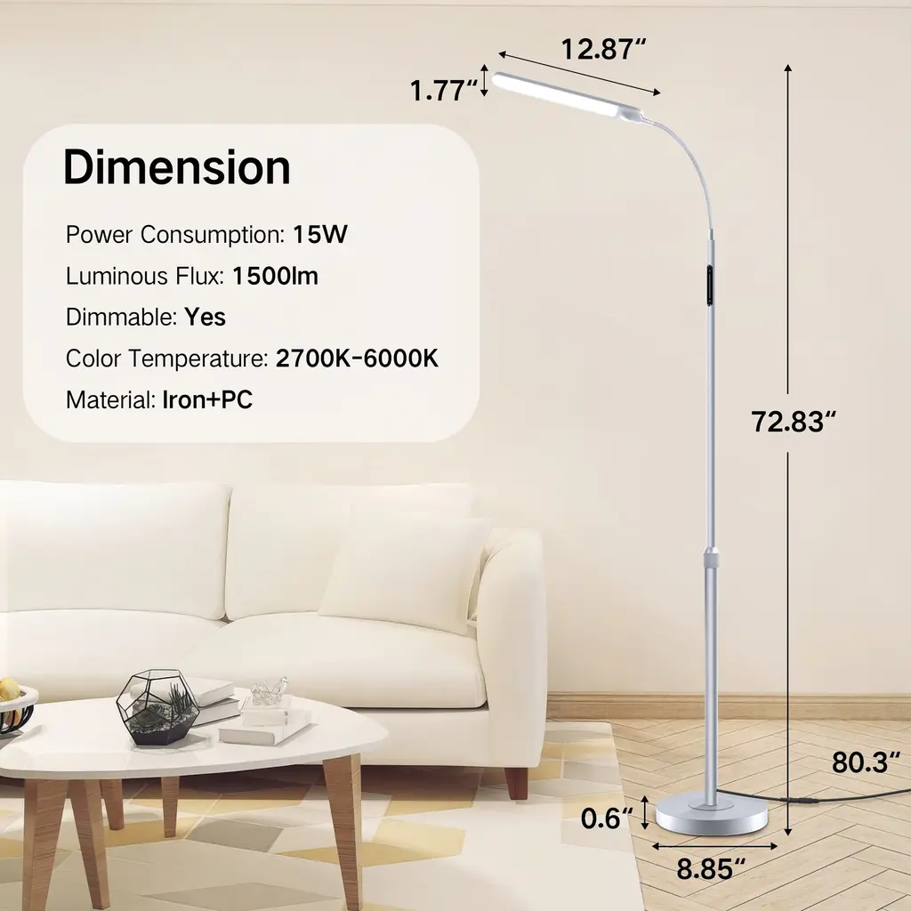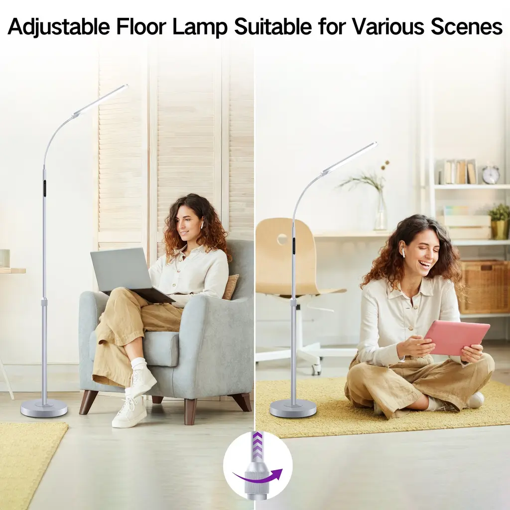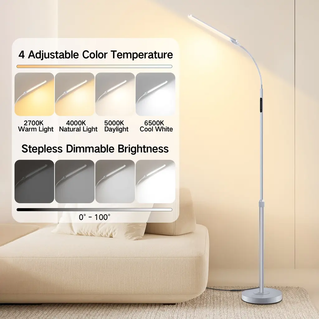 Led Floor Lamp Adjustable Reading Floor Lamp With Remote Control - N/a - Silver Gray