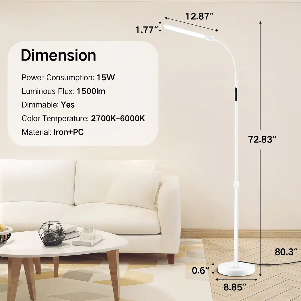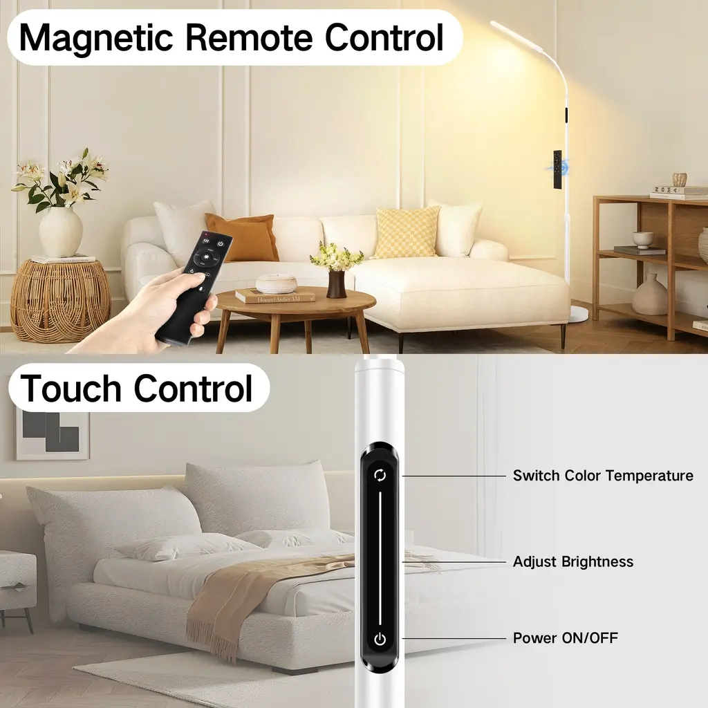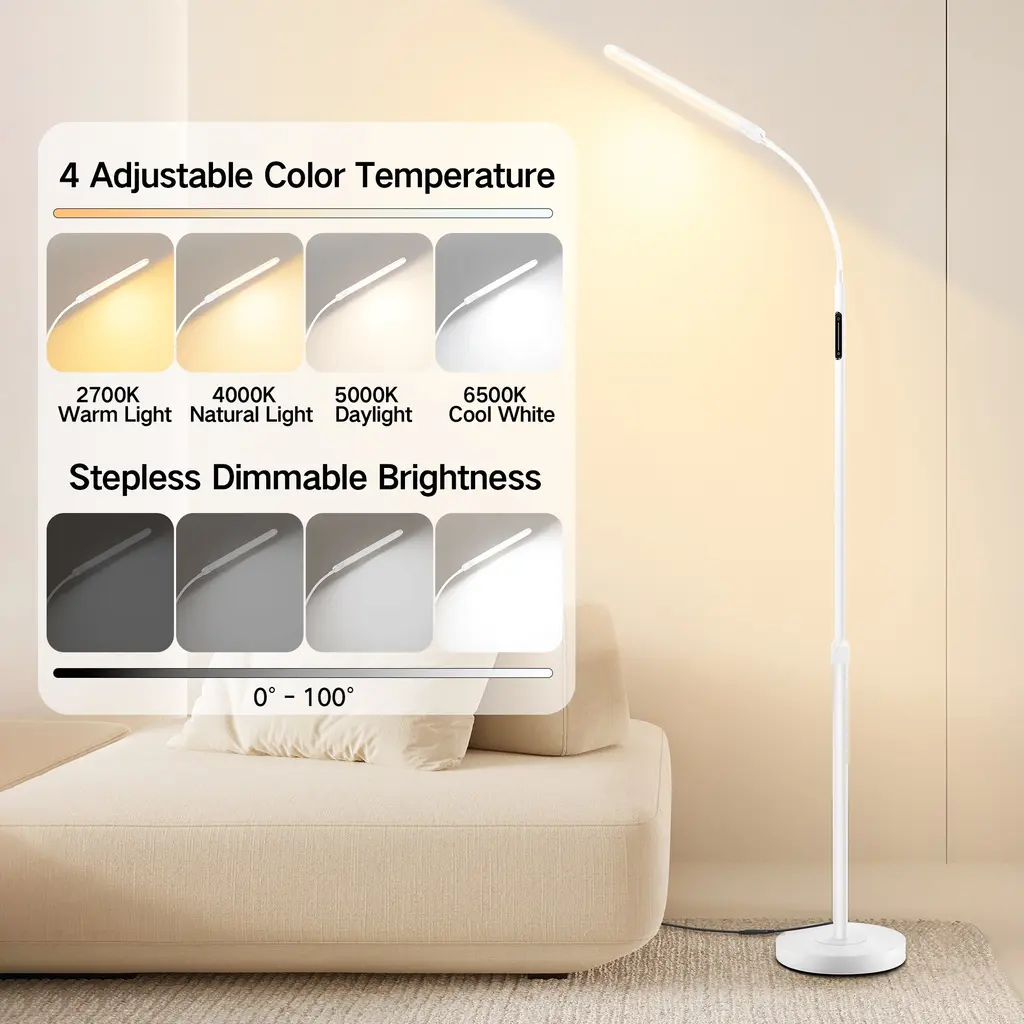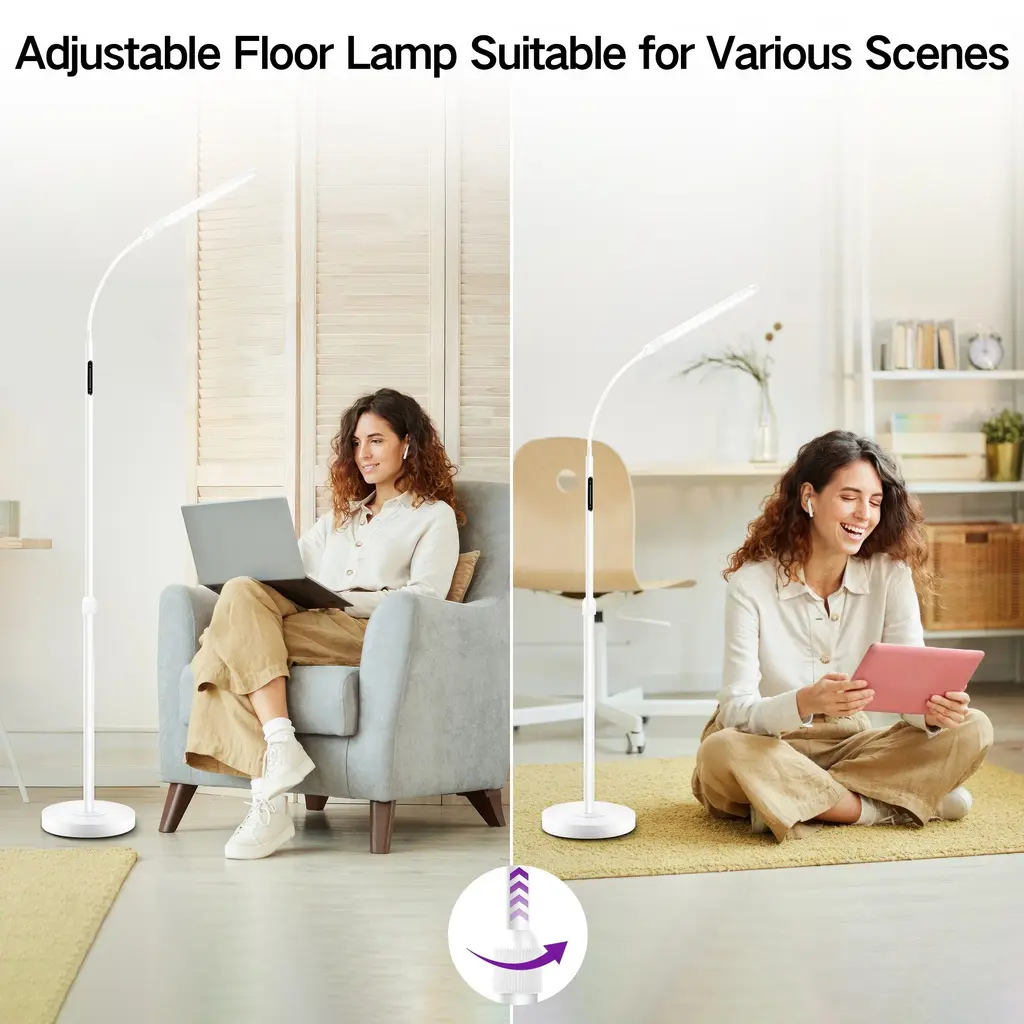 Led Floor Lamp Adjustable Reading Floor Lamp With Remote Control - N/a - White