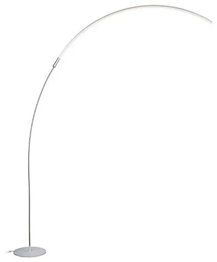 This innovative design perches an illuminated crescent-shaped LED light fixture atop a wire-thin metal base. The moon-like light curves over you as you read, create lesson plans, or meditate. Both the height and brightness are adjustable. A foot pedal switch operates the power and dimmer functions. the crescent beam of light never overheats. It stays cool to the touch after hours of use! The 3,000 Kelvin color temperature is bright enough for reading, yet soft and gentle on the eyes.Measures 11" wide by 53" tall. It contains the Arc LED head, a pencil-thin silver or black finished stem, a numbered diagram for assembly, a power cord with attached on/off pedal switch, and a weighted base in its own separate mini-box.- The Leaning Tower Of Light- Cool Breeze Under The Moonlight- Embrace futuristic mood lighting with this crescent-shaped- Ultra-thin LED bulb that''s attached to a flexible metal stand included.- Bask for hours in bright, soft light while never overheating the room