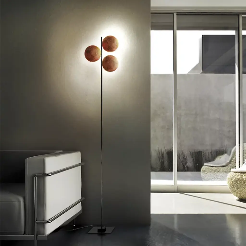 The Lederam F3 LED Floor Lamp from Catellani & Smith creates an alluring mood with an abstract composition that’s familiar, thoughtful, and sophisticated. The floor lamp continues Catellani & Smith’s goal of giving shape to light. Versatility and simplicity go hand in hand here, as illustrated in the piece’s low-profile square base. The ultra-slim rod springing above inserts itself in tight quarters like a corner or next to a sofa. This metal rod produces circular metal discs that diffuse light on their smooth surfaces. The discs pop visually as seemingly floating circles. They distribute a warm aura of clean LED light.