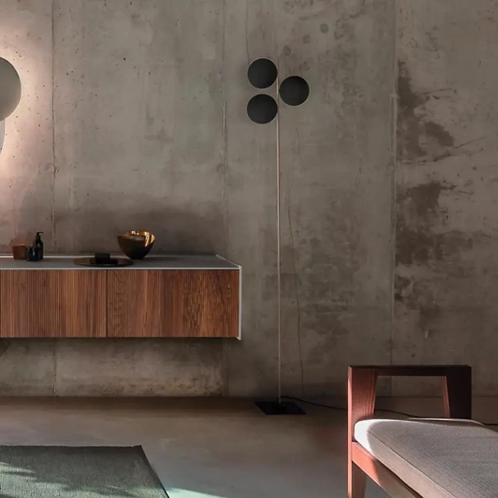 The Lederam F3 LED Floor Lamp from Catellani & Smith creates an alluring mood with an abstract composition that’s familiar, thoughtful, and sophisticated. The floor lamp continues Catellani & Smith’s goal of giving shape to light. Versatility and simplicity go hand in hand here, as illustrated in the piece’s low-profile square base. The ultra-slim rod springing above inserts itself in tight quarters like a corner or next to a sofa. This metal rod produces circular metal discs that diffuse light on their smooth surfaces. The discs pop visually as seemingly floating circles. They distribute a warm aura of clean LED light.
