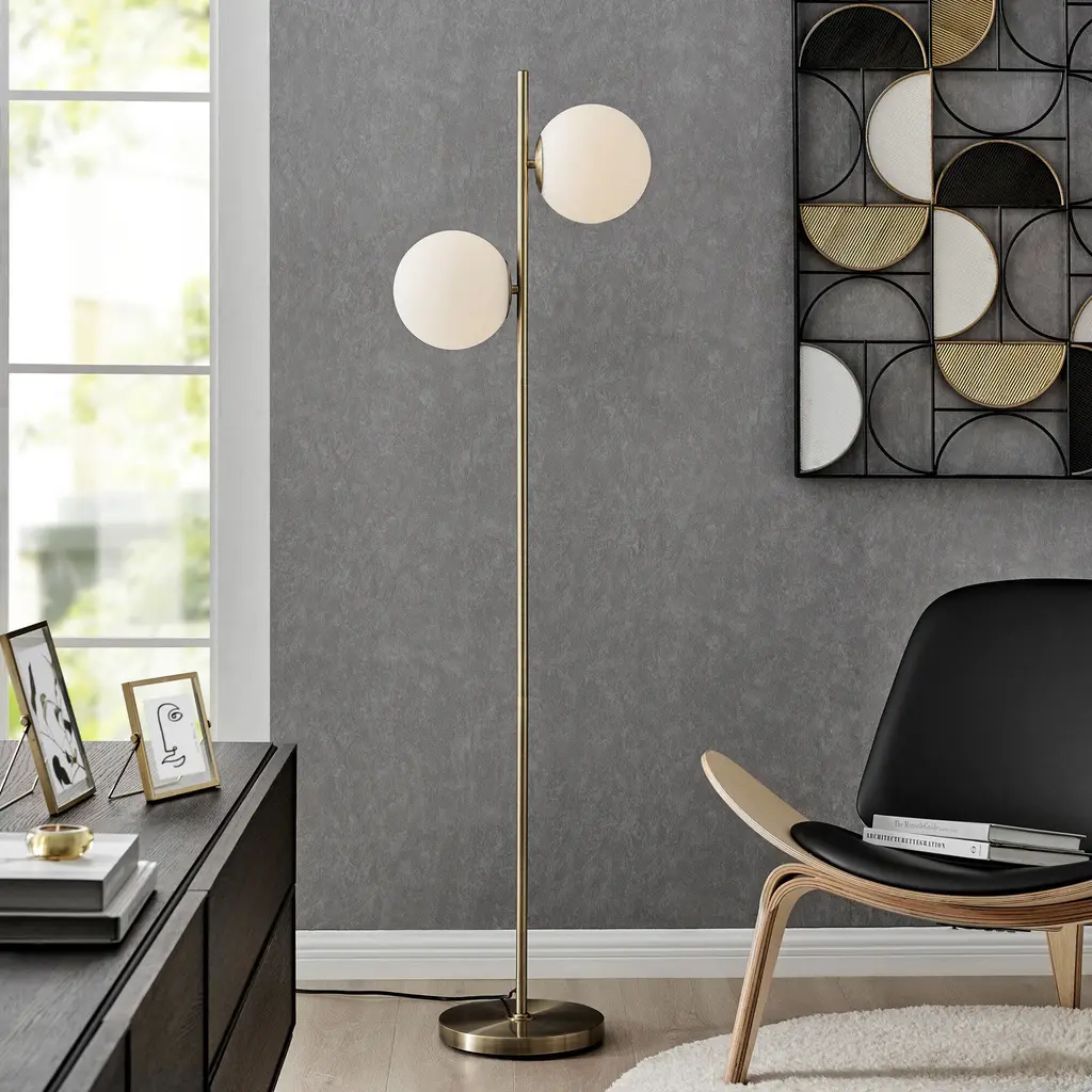 2-lite Floor Lamp, Gold/frost Glass Shade, E27 G45 25wx2