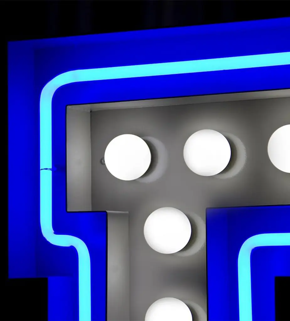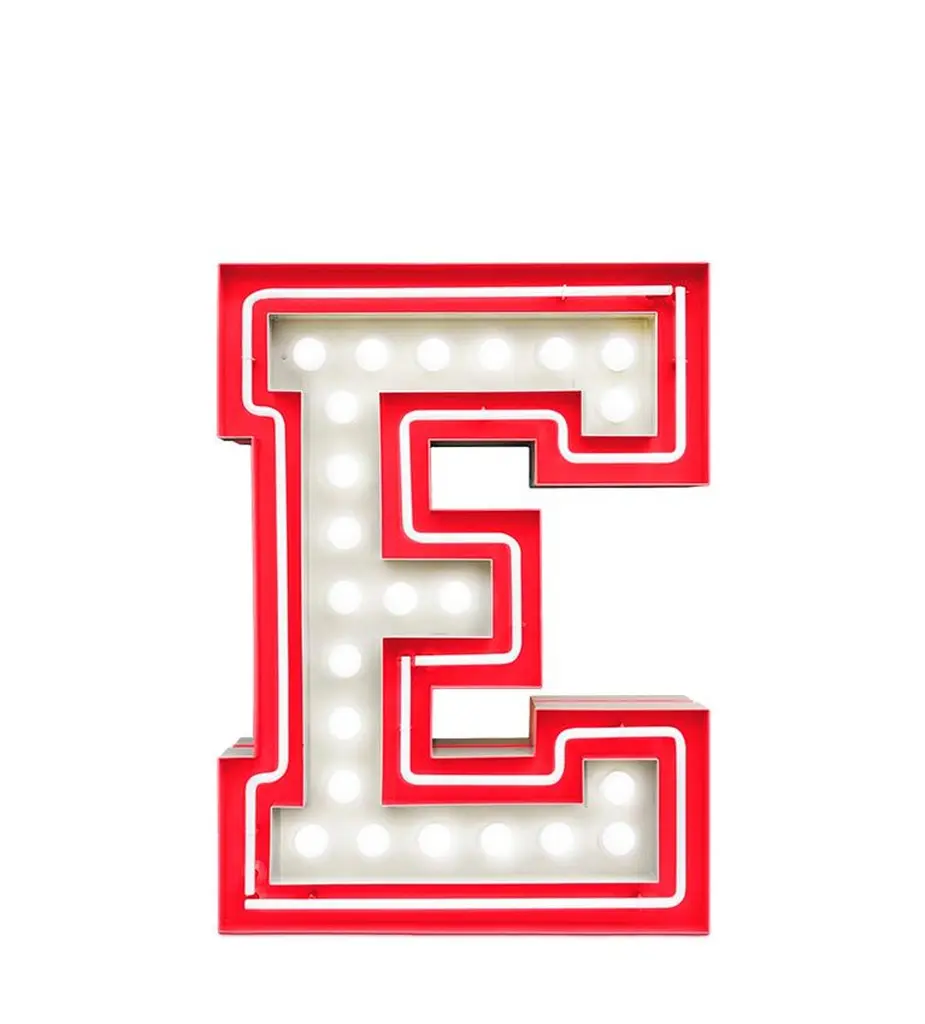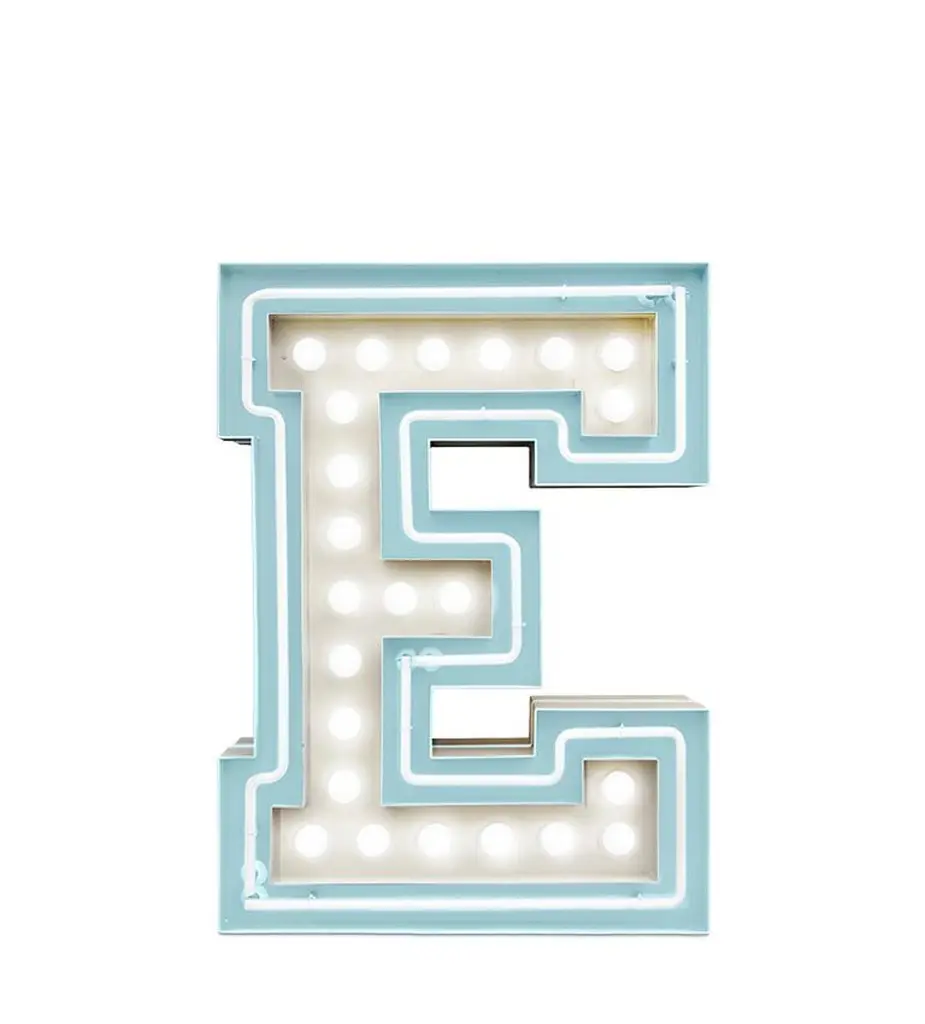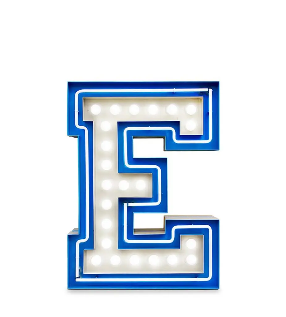 "Letter E Graphics Lamps"Body : AluminiumBulbs : Cyan Neon and 23 x E27 Bulbs 116W12-16 Weeks of productionPossible customizer19 Kg105 x 74 x 20 cm(Also available in a mini version).