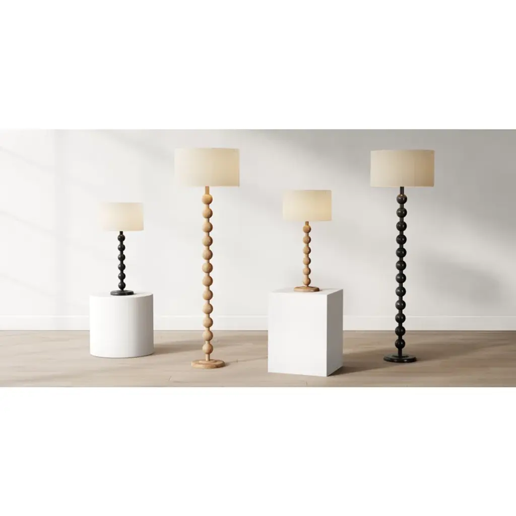 Elevate your space with this wooden floor lamp that brings a warm, inviting touch to any room. The lamp's base is crafted from solid wood, offering a natural look that complements a variety of styles. With a single 150-watt bulb (not included) and a three-way rotary socket switch, you can easily adjust the lighting to suit your mood. The linen shade adds a soft, cozy feel to the overall design. Plug it in, and enjoy the welcoming ambiance this floor lamp creates in your home.