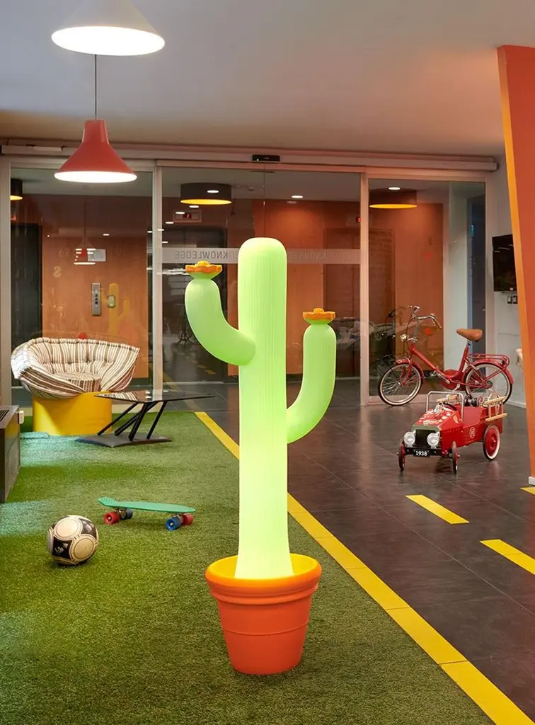 Light Green Cactus Floor Lamp by SLIDE StudioDimensions: D 42 x W 54 x H 130 cm.Materials: Polyethylene.Available in different color options. Prices may vary. This product is suitable for indoor and outdoor use. All our lamps can be wired according to each country. If sold to the USA it will be wired for the USA for instance. Please contact us.Our stories happen in places precious to us. SLIDE was born from the desire to produce furniture and light to create the perfect atmosphere that highlights emotions.Design is inspiration, surprise, joy. It's the amazement of seeing something unique for the first time. It's creating spaces to feel good and live surrounded by beauty. It means giving a personal imprint to indoor and outdoor spaces. It means choosing your ideal element that is the perfect setting for emotions and experiences, which become indelible memories. The founder Giò Colonna Romano knows this well, combining his fervent imagination with thirty years of know-how in the processing of plastic resins, giving birth to SLIDE in 2002. The first note of amazement is the luminous furniture, which immediately became a must have in the world of events. Since 2015, his son Marco Colonna Romano has taken over the reins of the company, with the same desire to grow and innovate as his father. Thanks to a new panache and the team of young people it surrounds itself with, SLIDE becomes a beloved company for outdoor furniture: new shapes, materials and tactile textures have won the hearts and ideas of architects and interior designers around the world. SLIDE has thus created complete collections and furnishings, with new shapes, whose lines arise from collaboration with internationally renowned designers of the caliber of Alessandro Mendini, Paola Navone, Stefano Giovannoni, Fabio Novembre, Marcel Wanders, Karim Rashid, Marc Sadler, Francesco Favaretto and Marcantonio.New materials were chosen and inserted, initially soft and rigid polyurethane, and then comfortable cushions, waterproof fabrics, tactile textures ideal for completing the polyethylene furnishings with taste and class. But SLIDE does not forget its first essence, lighting: in recent years it has developed a line of much more technical lamps for large areas, essential in shape but with great visual impact. For the first time, Slide has managed to give an artisanal twist to an industrial process: to meet the increasingly high demands of living, the production creates non-replicable shades, in which every small imperfection enhances the industrial process and makes each piece unique . Because Slide's strength has always been the careful reading of the market, the creation of something that didn't exist and which then became necessary: here Slide continues its production in Buccinasco, on the outskirts of Milan, but its name and its products reach more than 130 countries around the world.