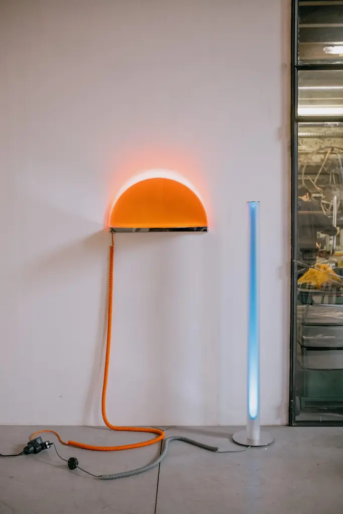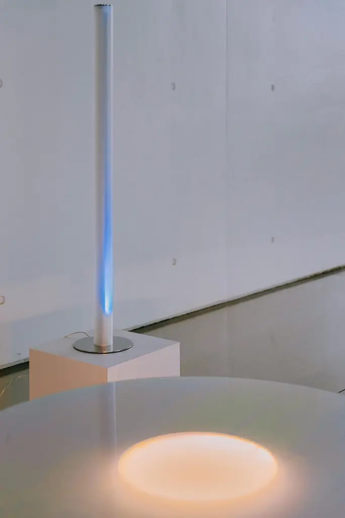Light pillar floor light by Amber DewaeleDimensions: D 25 x W 25 x H 141 cm.Materials: Acrylic and polished stainless steel.Available with a frosted or clear Acrylic tube. Please contact us.Light Pillar Floor LightA floor light that replicates the phenomenon where a vertical beam of light appears to extend above and/or below a light source. The effect is created by the reflection of light from tiny ice crystals that are suspended in the atmosphere. The light source transforms into a majestic beam of light that seems to extend into infinity.All our lamps can be wired according to each country. If sold to the USA it will be wired for the USA for instance. Please contact us.Atmosphere CollectionA collection based on the beauty of the sky.For me the true essence of beauty is found when simply looking up to the sky. It’s the reaction between the light and the atmosphere that creates beautiful optical phenomena that for a brief moment makes you appreciate the world we are living in and forget about all the rest. It’s these wonders of the sky that were the inspiration for the atmosphere collection: from corona to coffee table, from light pillar to floor lamp and from sunset to wall unit. Using various materials and respective processing techniques in combination with artificial light, this collection brings the wonders of the sky into the interior.About the designer.Amber Dewaele is an Antwerp-based furniture and product designer. Born in 1997, her portrait reflects a young but driven woman ready to rethink the visual object world through her own playfull lens.Amber recently graduated from the Thomas More Hogeschool, where she was taught the arts and crafts of furniture design. Combined with her preceding studies in industrial product design, she has a perfectly balanced portfolio between functionality and creativity. When taking a step back to better understand her, one rapidly realizes that she seeks the simplicity in the boundless complexity, both in form and function.Her ideas germinate from a certain philosophy, material or production process. From rough idea generation up to decisive implementation, functionality is the common thread throughout the process. This common thread defines the artistic approach to a functional yet poetic end product. Her creations have been known to evoke specific emotions, trigger feelings and make people wonder.Although very mature, Amber never abandoned her inner child, to whom she still listens when in search for abundant inspiration. It provides her with a rich source of inspiration. Playfulness is therefore often reflected in her designs.