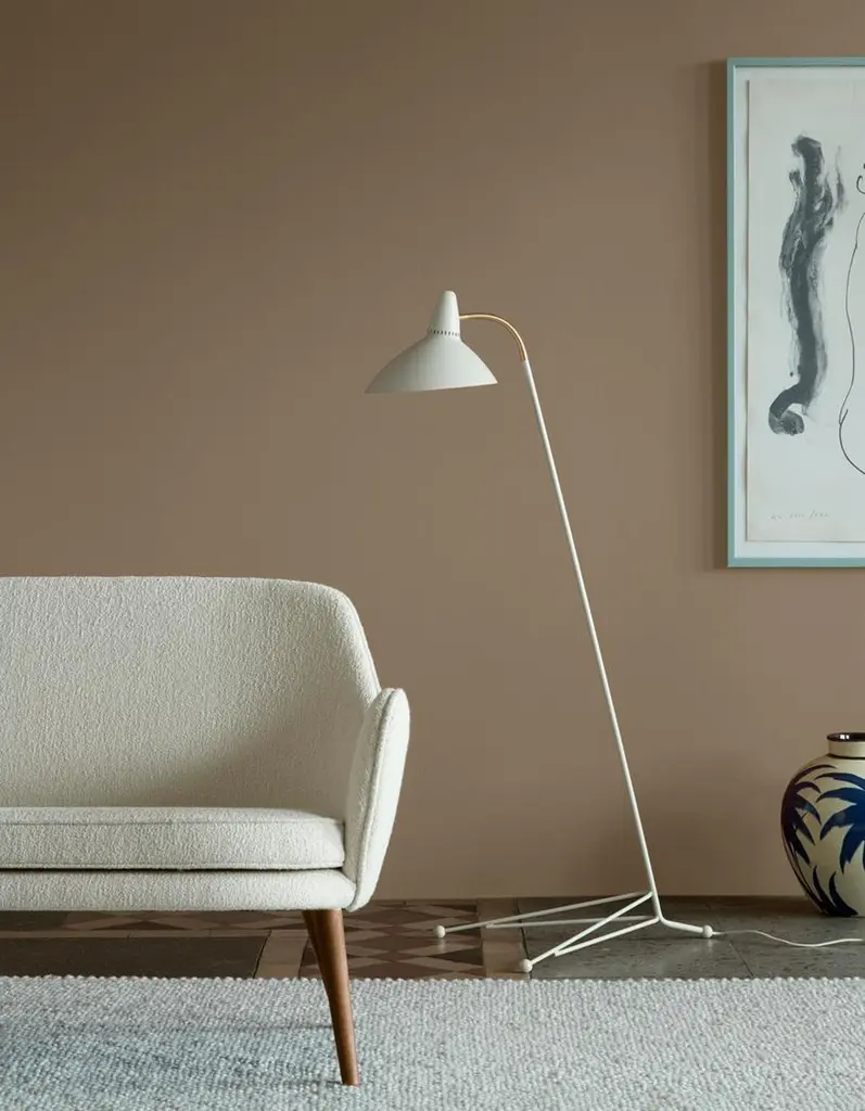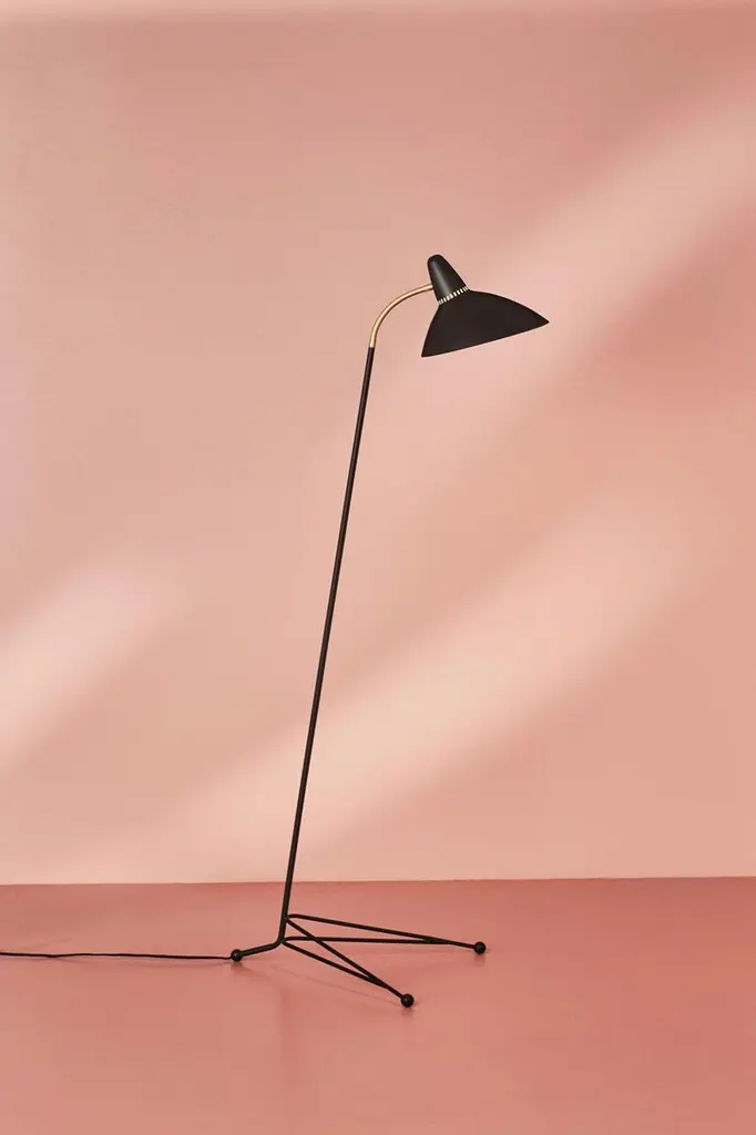Lightsome Black Noir Floor Lamp by Warm NordicDimensions: D45 x W47 x H132 cmMaterial: Lacquered steel, Solid brassWeight: 2 kgAlso available in different colours. Please contact us.A floor lamp with an elegantly shaped, wide shade by the grand master of 1950s Danish lighting design, Svend Aage Holm-Sørensen. Lightsome is a sophisticated lamp perched gracefully on a slender three-legged base. The generous lighting provided by the large sculptural shade is perfect in the vicinity of a sofa or as a reading lamp next to an armchair. The iconic light holes in the floor lamp's painted metal shade are an extra Sven Aage Holm-Sørensen designer touch. Its gentle idiom and discreet brass details make Lightsome a timeless floor lamp of the highest quality. Choose from several classic colours in Warm Nordic's exclusive silky matt quality paint, which guarantees an extraordinarily beautiful and durable surface.Warm Nordic is an ambitious design brand anchored in Nordic design history and with a timeless, aesthetic style that inspires you to appreciate the little things in life. The company is the result of several years’ intense work on developing a new design brand with design history, quality and personality at its core. Warm Nordic boasts a colourful and charming universe of furniture, lamps and accessories full of personality. Our designs encapsulate the Nordic spirit, which in its essence is timeless, inclusive and warm.