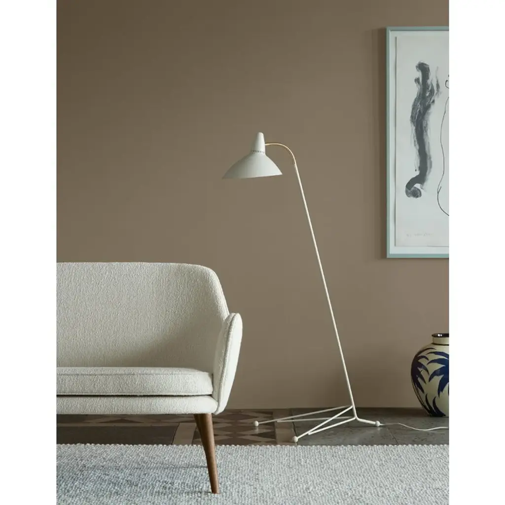 Lightsome floor lamp, designed by Svend Aage Holm-Sørensen in the 1950s, is a Danish design classic that has been re-released by Warm Nordic. A sculptural combination of a perforated metallic shade and long, sleek stem, Lightsome makes a pleasant reading light or decorative detail of a living room. The silky matt lacquer gives the lamp a soft and sophisticated finish. In the 1950s, the Danish lighting designer and ornamental metalworker Svend Aage Holm-Sørensen created a wide range of luminaires characterized by skillfully shaped metal and harmonious details. Warm Nordic’s re-release makes the distinctive design lamps available to contemporary homes and interiors.