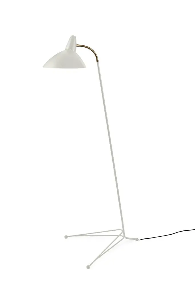 Lightsome Warm White Floor Lamp by Warm NordicDimensions: D45 x W47 x H132 cmMaterial: Lacquered steel, Solid brassWeight: 2 kgAlso available in different colours. Please contact us.A floor lamp with an elegantly shaped, wide shade by the grand master of 1950s Danish lighting design, Svend Aage Holm-Sørensen. Lightsome is a sophisticated lamp perched gracefully on a slender three-legged base. The generous lighting provided by the large sculptural shade is perfect in the vicinity of a sofa or as a reading lamp next to an armchair. The iconic light holes in the floor lamp's painted metal shade are an extra Sven Aage Holm-Sørensen designer touch. Its gentle idiom and discreet brass details make Lightsome a timeless floor lamp of the highest quality. Choose from several classic colours in Warm Nordic's exclusive silky matt quality paint, which guarantees an extraordinarily beautiful and durable surface.Warm Nordic is an ambitious design brand anchored in Nordic design history and with a timeless, aesthetic style that inspires you to appreciate the little things in life. The company is the result of several years’ intense work on developing a new design brand with design history, quality and personality at its core. Warm Nordic boasts a colourful and charming universe of furniture, lamps and accessories full of personality. Our designs encapsulate the Nordic spirit, which in its essence is timeless, inclusive and warm.