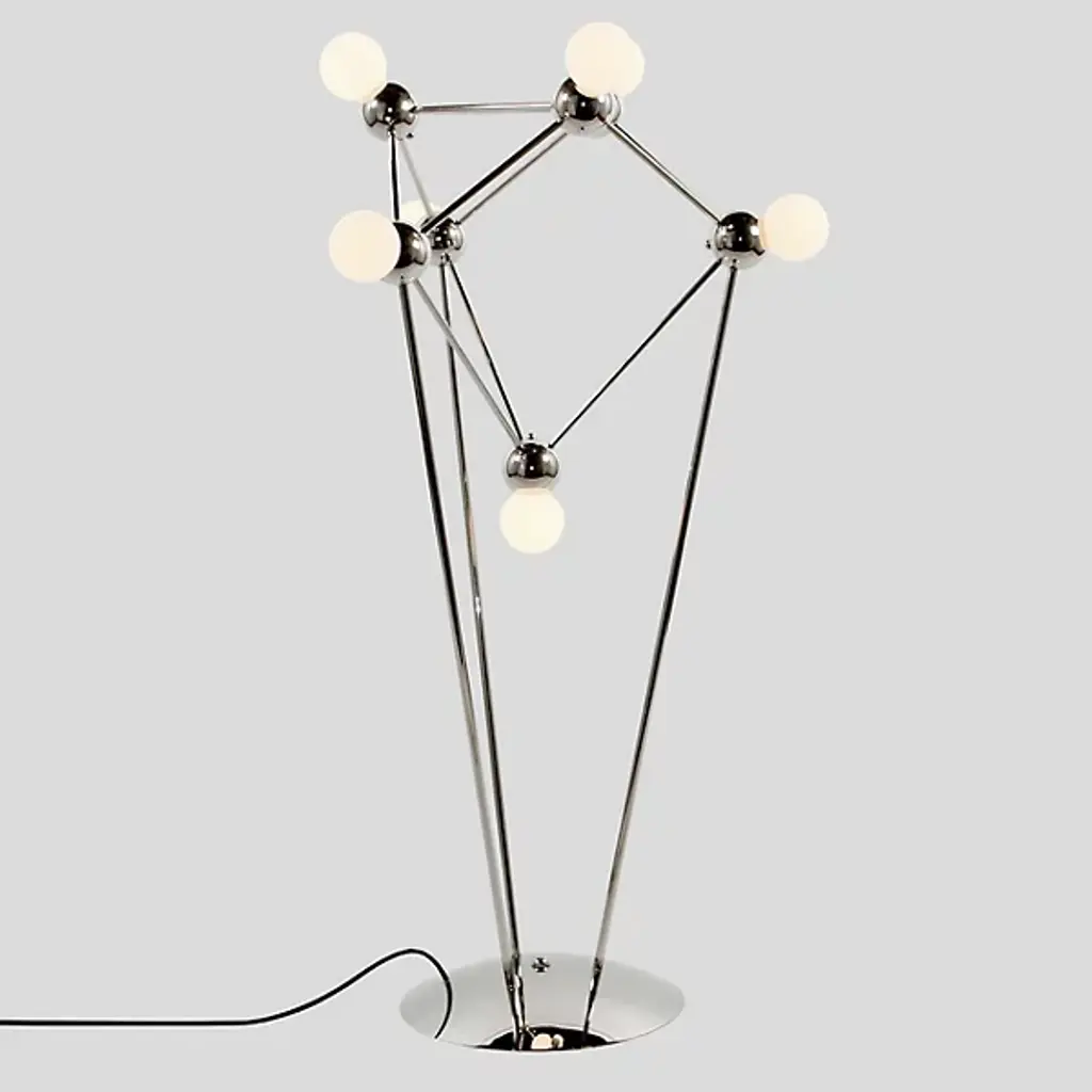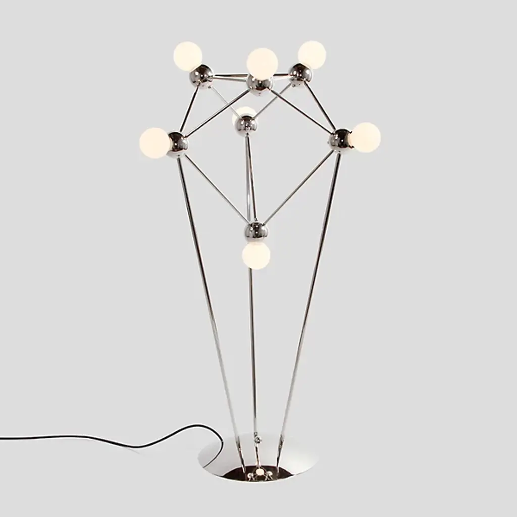 Bring an artisanal modern flair to your home with the Lina 07 Floor Lamp by Rosie Li Studio. This meticulously crafted furnishment is the creation of designer Rosie Li. A streamlined baseplate provides the foundation for a linear, metal framework. Your floor lamp is defined by its abstract, geometric shape. Globes elegantly rest at points of unison along the Lina 07 Floor Lamp’s linear body. These globes are vibrantly illuminated by LEDs which can be dimmed when paired with an ELV Dimmer.
