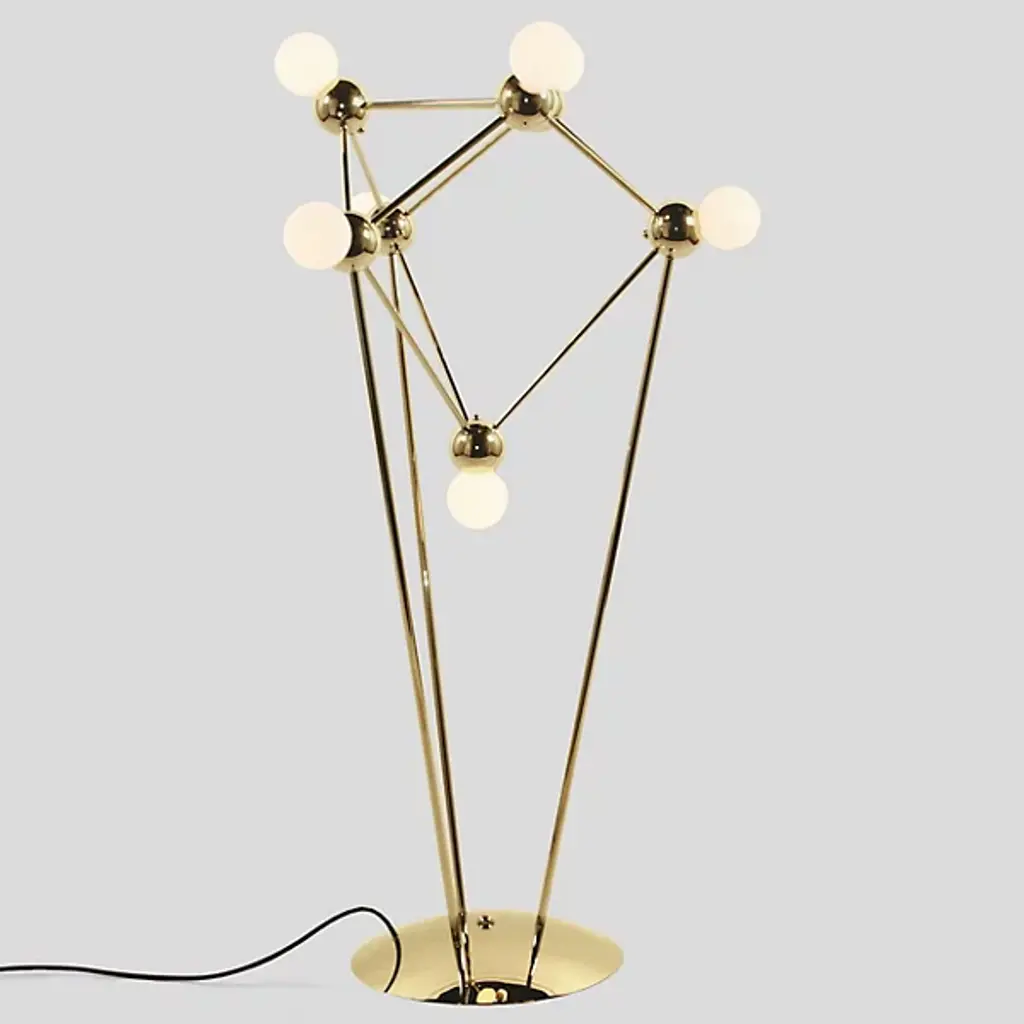 Bring an artisanal modern flair to your home with the Lina 07 Floor Lamp by Rosie Li Studio. This meticulously crafted furnishment is the creation of designer Rosie Li. A streamlined baseplate provides the foundation for a linear, metal framework. Your floor lamp is defined by its abstract, geometric shape. Globes elegantly rest at points of unison along the Lina 07 Floor Lamp’s linear body. These globes are vibrantly illuminated by LEDs which can be dimmed when paired with an ELV Dimmer.