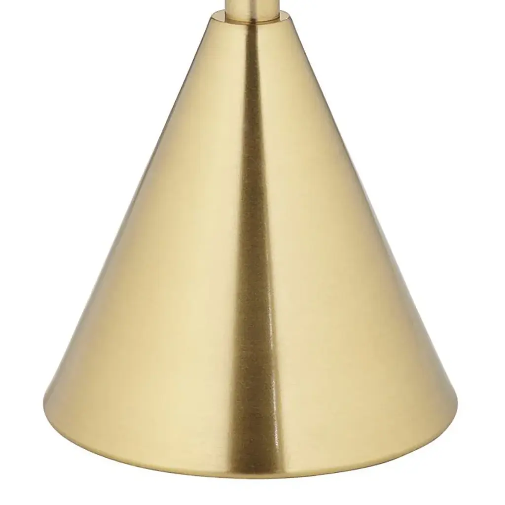 Elevate your home decor with this stylish brushed brass floor lamp, featuring a sleek conical base and a gracefully hanging white fabric shade. The modern design adds a touch of sophistication to any room, while the convenient on/off switch ensures effortless operation. Ideal for living rooms, bedrooms, or reading nooks, this lamp combines functionality and elegance to enhance your space with warm, inviting light.