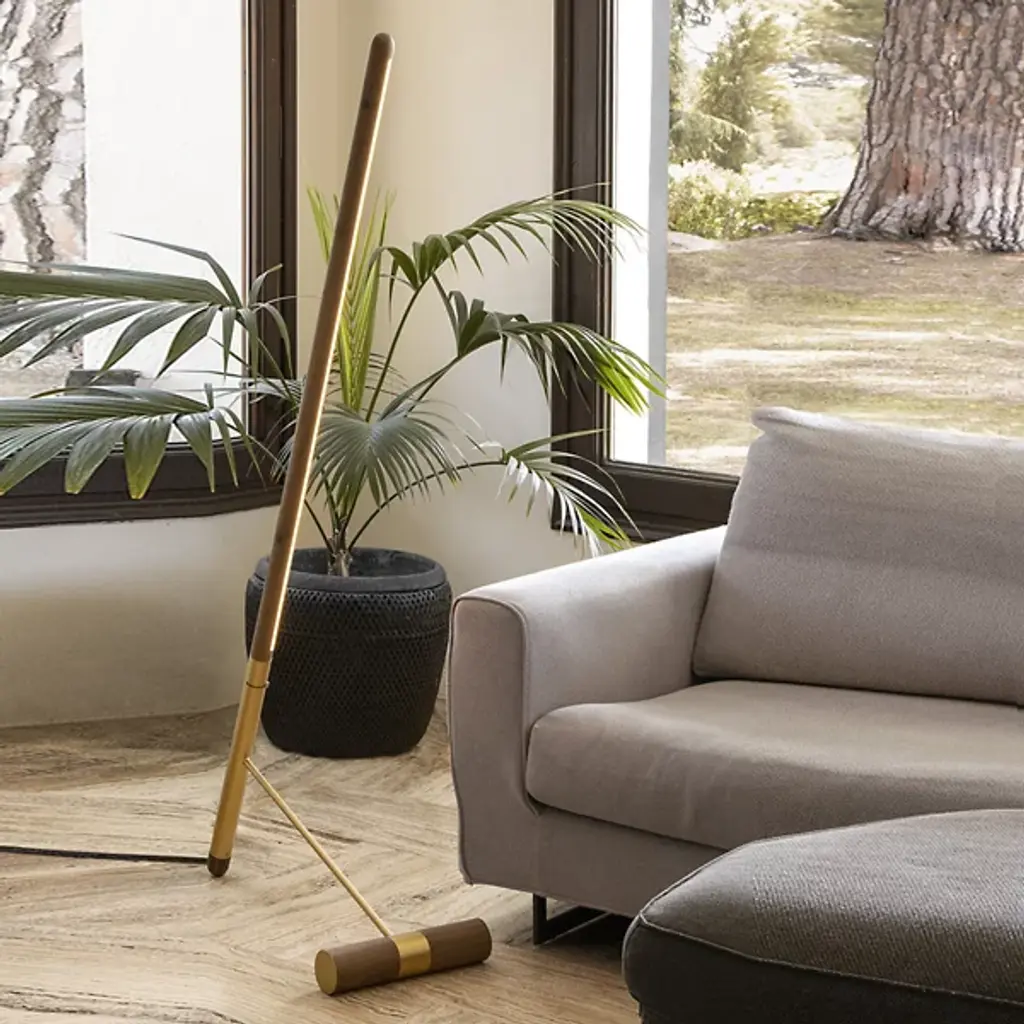 Present expressive and modern character to inside spaces with the abstract angles and curving lines of the Linea LED Floor Lamp from Nomon. A clever creation designed by Andres Martinez, it’s focused on dispensing an offset ambiance through an LED lamp embedded in its tall, wooden body. It’s steadied by a cylindrical wooden leg capped in contrasting metal. Its slender metal rod and dual collar system offer an angular accent and a solid structural bracing element, dispensing a soft, radiant warmth that gleams off the smooth surfaces below.