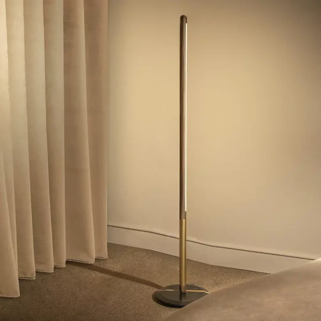 Make a contemporary design statement with the Linea UNO LED Floor Lamp from Nomon. Designed by Andres Martinez, this floor lamp takes modern minimalism to new levels with its streamlined metal framework. An LED splays light effortlessly from within, casting a mesmerizing glow that’s dimmable through an ELV dimmer. Your light fixture is secured by a durable baseplate. This light fixture demonstrates excellent Spanish craftsmanship.