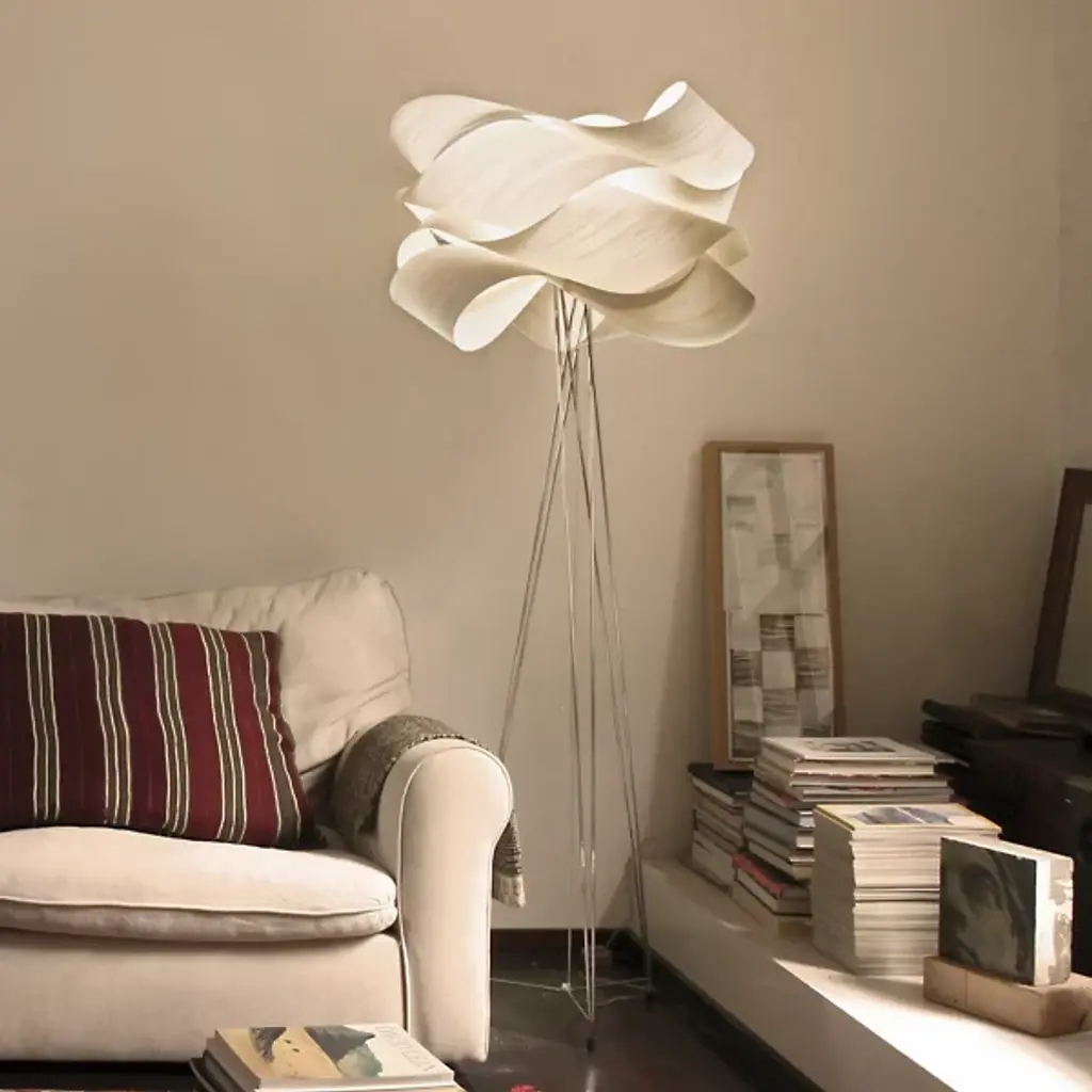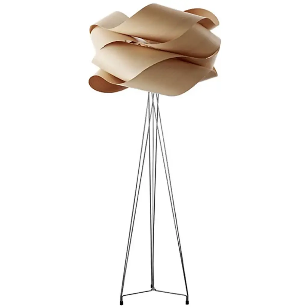 The LZF Link Floor Lamp is the latest design by Ray Power in his ongoing study of form, repetition and geometry. Link's sumptuous curves create an organic pattern that is endlessly engaging to the eye and glows in tones from light to dark. This lamp explores the maximum potential of veneer and features a Natural timber wood veneer shade in a variety of colors.