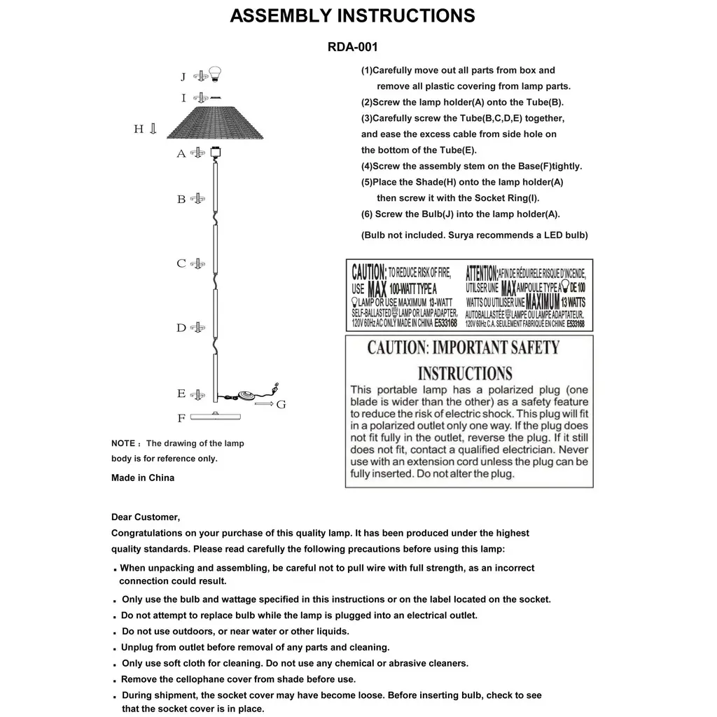 Introducing the Ronda Accent Floor Lamp, a delightful blend of Arts & Crafts Traditional style. This tall, 64 inches, statement piece is made entirely from metal, offering a sturdy and reliable addition to your interior d?cor. The highlight of this lamp is its captivating rattan shade which diffuses light beautifully to create an inviting atmosphere in any room. Caring for this elegant floor lamp is simple - just wipe clean with a dry cloth to keep it looking new and avoid using harsh cleaners which could potentially damage the finish. Enhance your home's illumination with this alluring and sophisticated accent floor lamp!