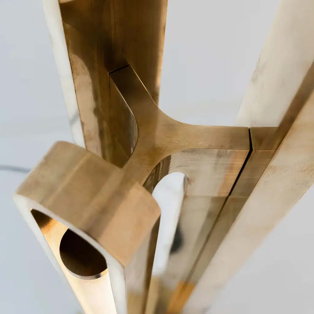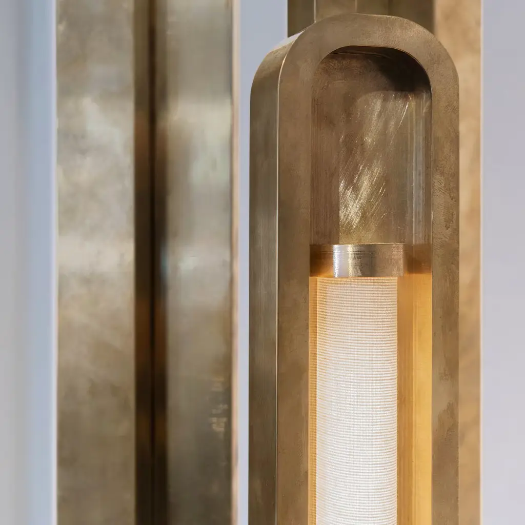 The Living in the Past is crafted entirely from solid brass, embodying a rock soul inspired by the rebellion and creativity of the Jethro Tull musical era. The light is diffused through a natural linen shade, casting warmth and intimacy while contrasting with the solid brass. Custom sizes and finishes are available on request. Bulb are included.