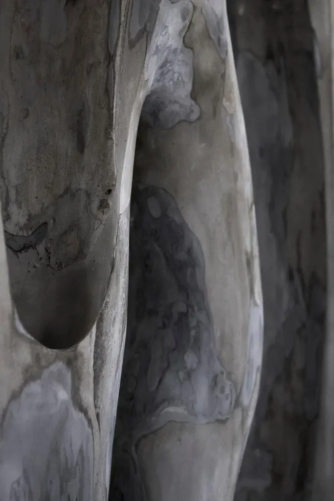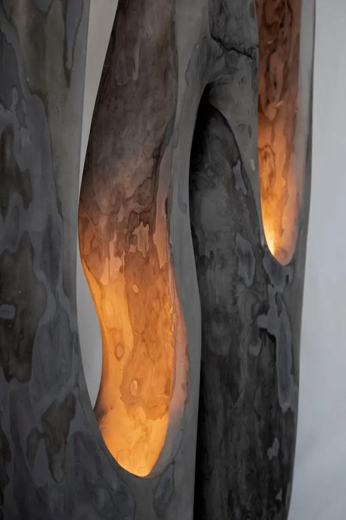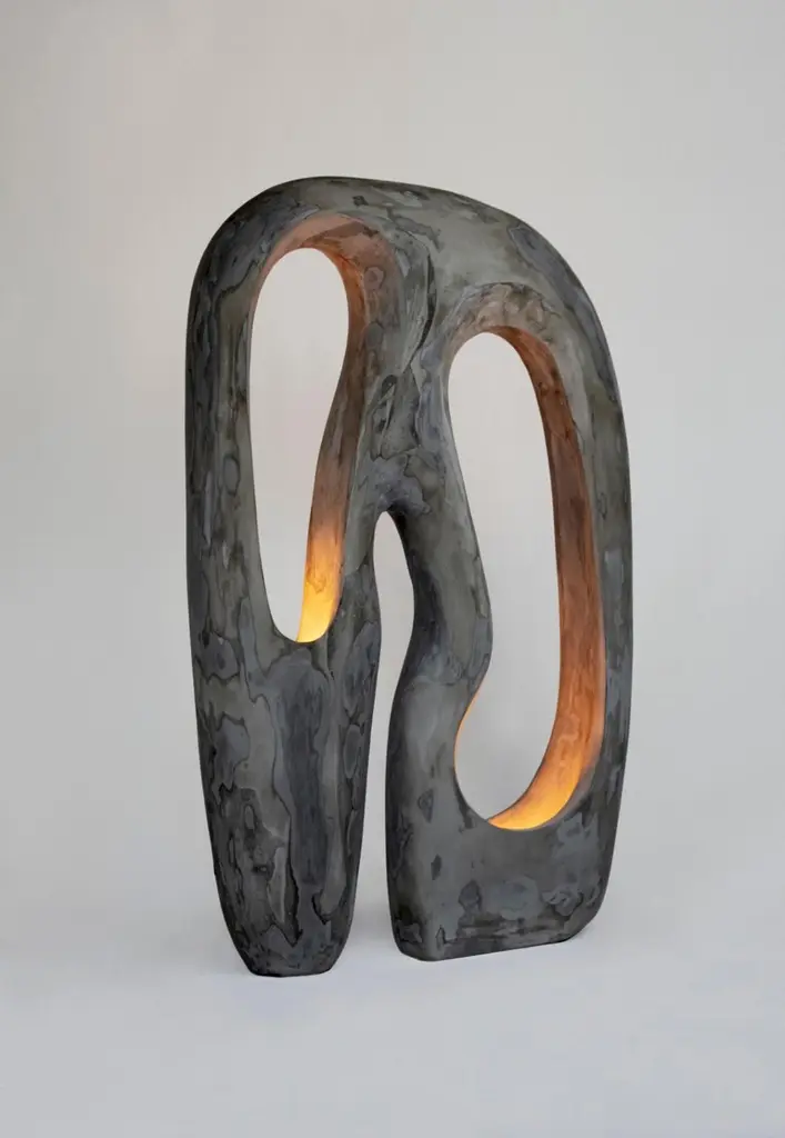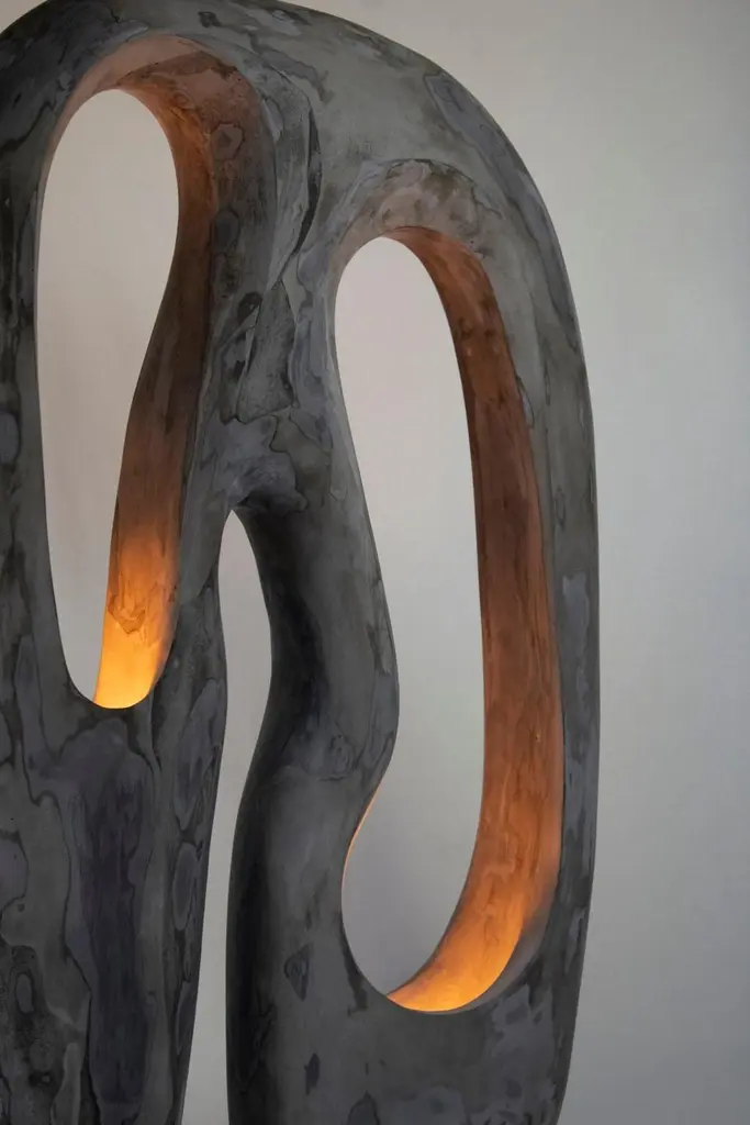Longing lamp by AOAODimensions:W 60 x D 13 x H 100 cm.Materials: grey plaster.Color options available upon request.The idea was born after deciding to reconnect with my family and my grandfather – a sculptor artist. Learning to sculpt and being a designer compelled me to combine these two mediums and use their best values. Experimenting with the functionality of sculpture and the meaning of furniture led me to create the collection.Studio AOAO is an interdisciplinary studio combining art and design. It was created by Alicja Strzyzynska and Onur Iseri in Amsterdam in 2020. “We specialise in making sculptural pieces by experimenting with the functionality of sculpture and the meaning of furniture. In our works, we focus on the emotional connection between the object and the user. All of our work seeks the experience of intimacy and the metaphysical bond between personal interaction and meaningful narrative. Through sculptural value and reflective design, we aim to create pieces that last for generations and help reduce environmental waste.”The inspiration to sculpt came from Alicja’s roots, her grandfather – an artist sculptor. Alicja completed Masters of Arts Degree in Product and Visual Communication Design at Warsaw Academy of Fine Arts and finished her bachelor degree in Interior Architecture. Alicja previously worked in Tokyo and Amsterdam in architectural design studios. Onur completed his business studies in Japan and worked in digital design & marketing as well as teaching in Tokyo.The studio’s first collection debuted at Rossana Orlandi Gallery during Milan Design Week 2021. The studio currently collaborates with RO Gallery and Galerie Philia.