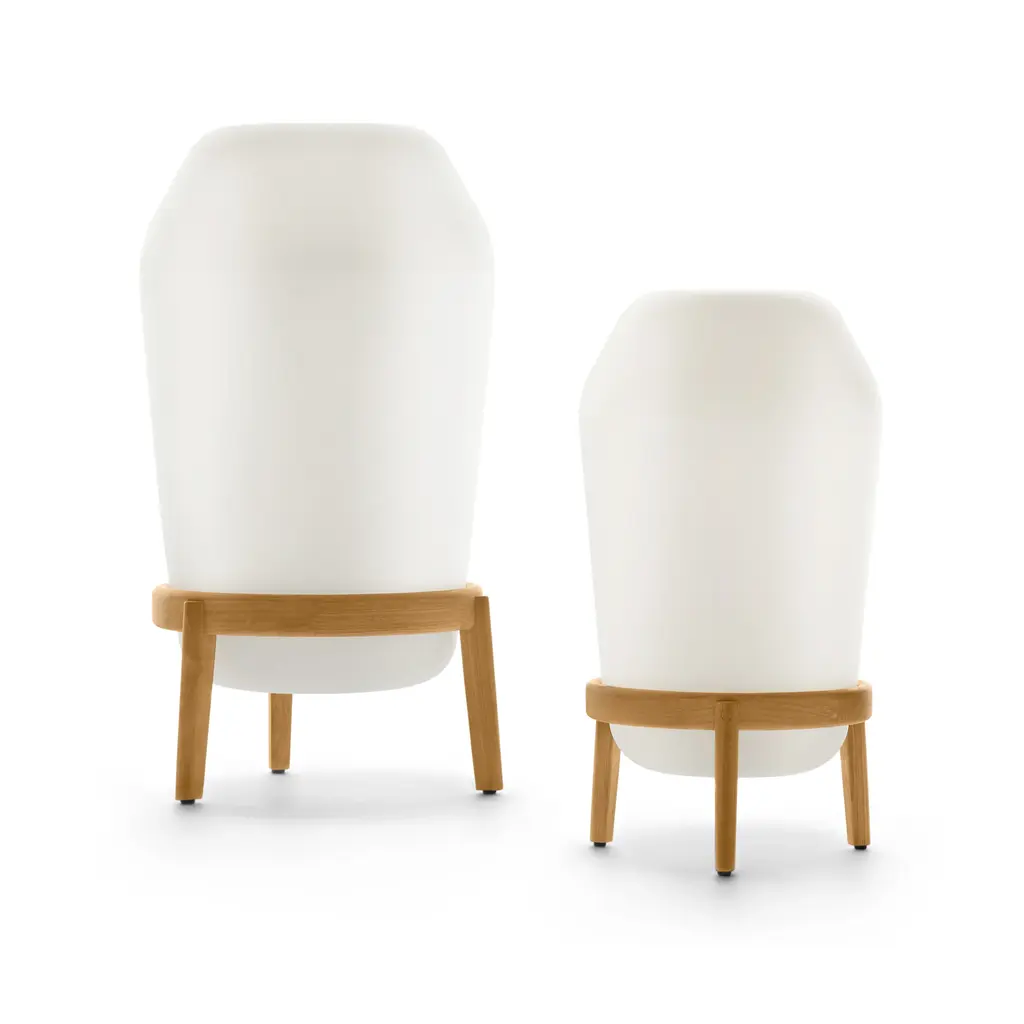 Get inspired by the LOON Floor Lamp from Dedon. An elegant, contemporary design, this balloon-like reservoir of light is suspended on a pedestal of premium teak, perfect for the outdoors. Enjoy its warm, ambient light, ideal for creating atmospheric evenings in the garden. A natural companion to the MBRACE range, this rechargeable and portable floor lamp goes wherever a warm glow is needed. Highlights