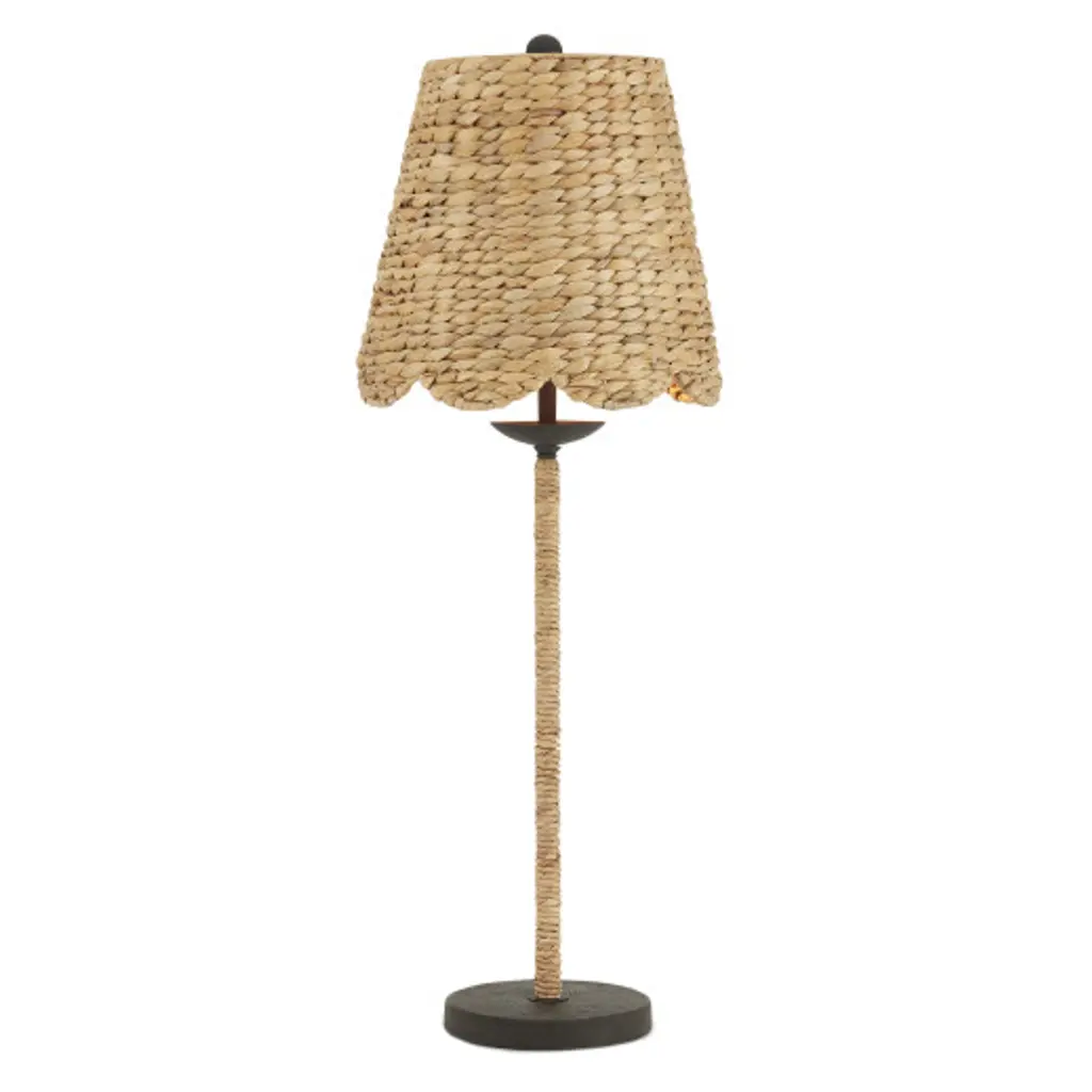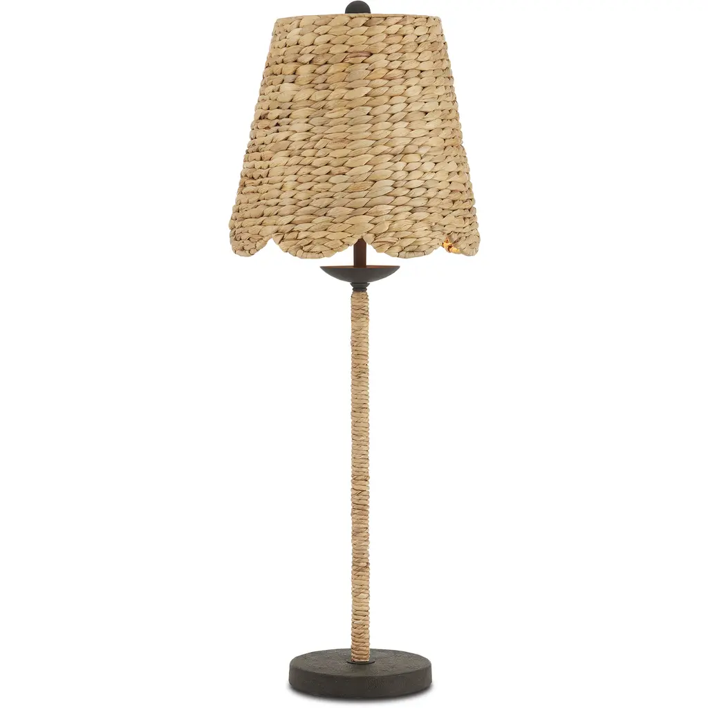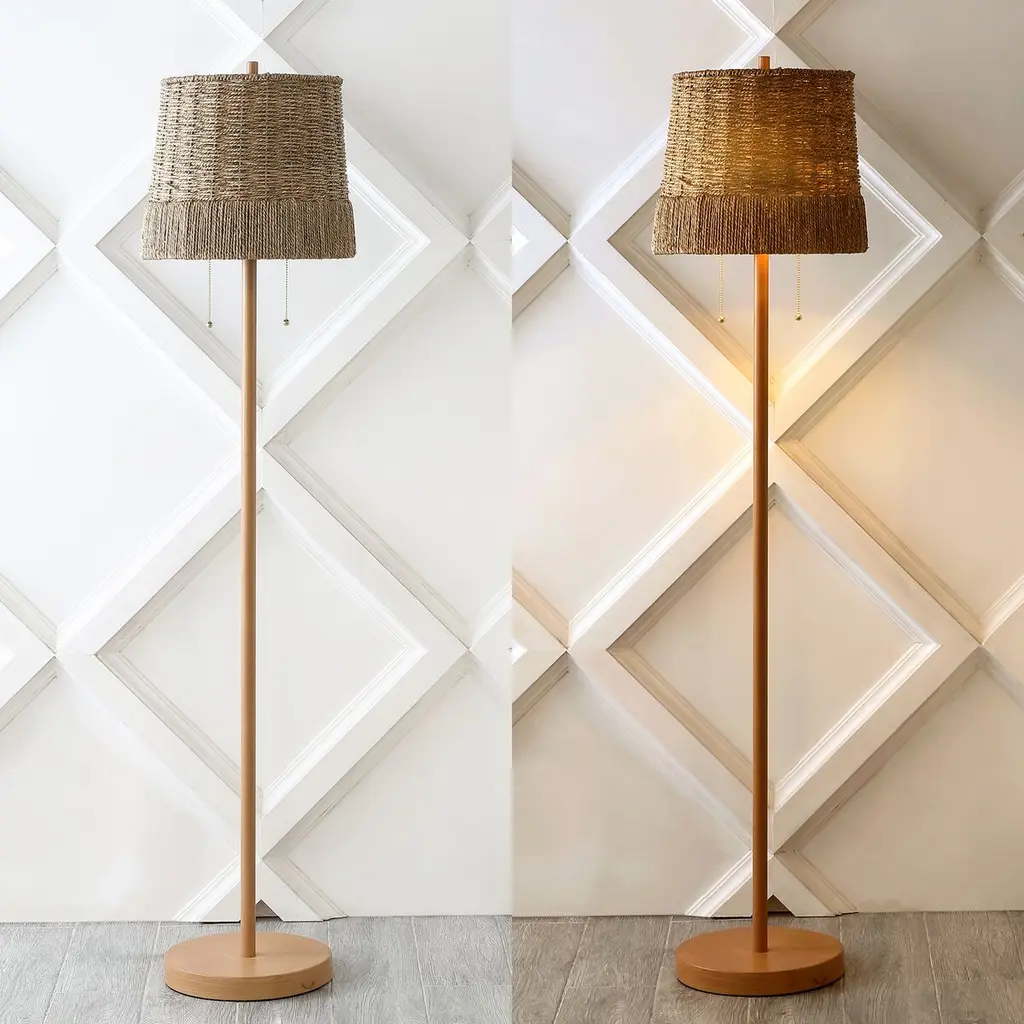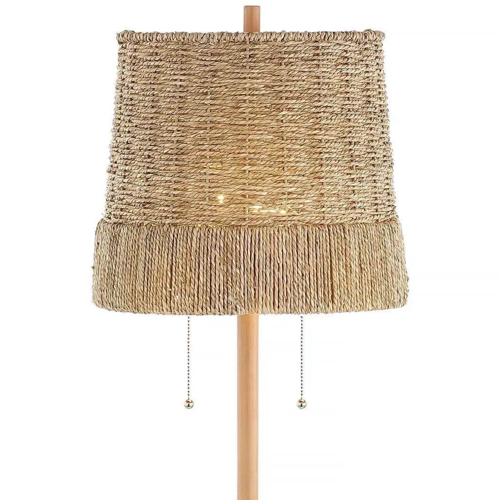 Fun and even a little flirty, this floor lamp pairs a woven seagrass shade with a stem and base made of metal given a faux bois finish. Each of the lamp's two bulbs has its own chain, so you can adjust the brightness as needed.