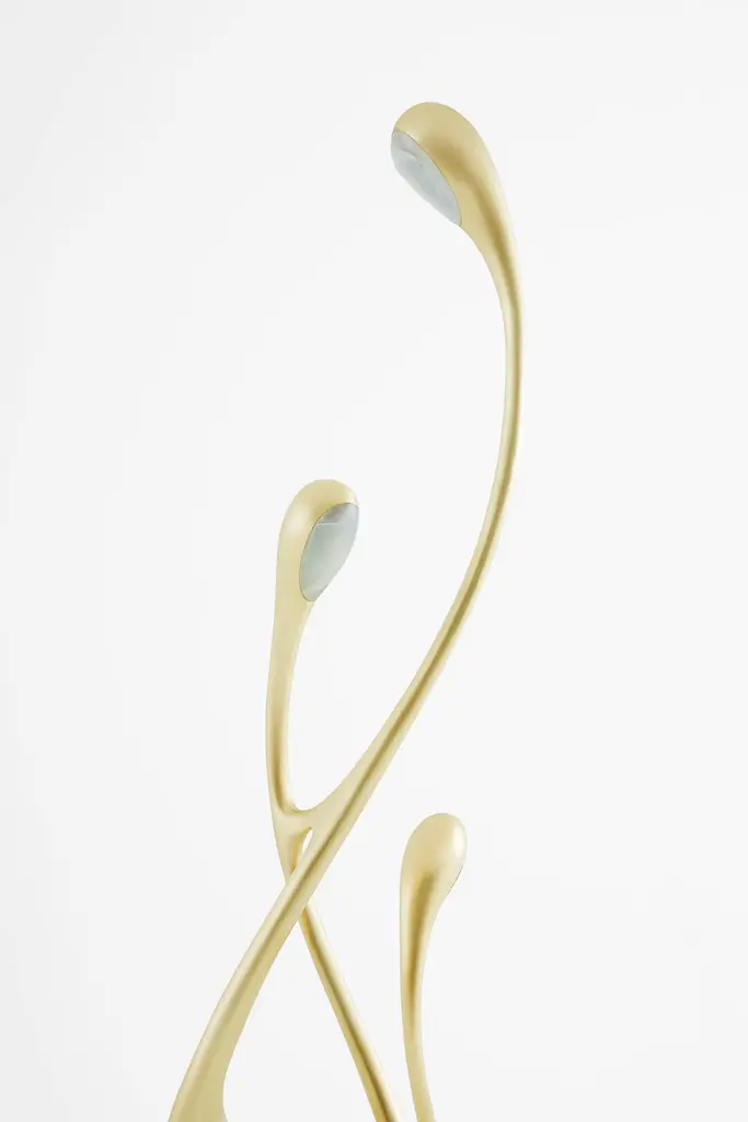 Tan’s practice, since graduating from the China Academy of Art, has been focused on the ancient technique of lost-wax casting. This ancient foundry process has created an intersection between Tan’s interest in heritage casting techniques and organic forms. The forms designed by Tan vary from being environmental (water drops, tree roots) to being figurative (spinal cords, pelvic structures). The Lotus collection brings together the botanical and human motifs most explicitly. The tension between the two references cause the works to become abstracted and take on a slightly surreal quality, whilst maintaining functionality. Tan’s practice continues to focus on the intersection between the craft of lost-wax casting and the creation of organic forms, at once thought provoking and beautiful.Keyword: floor lamp, floor light, living room lamp, brass lamp.