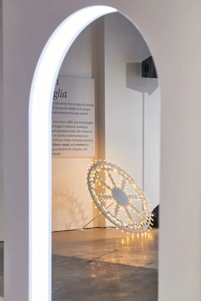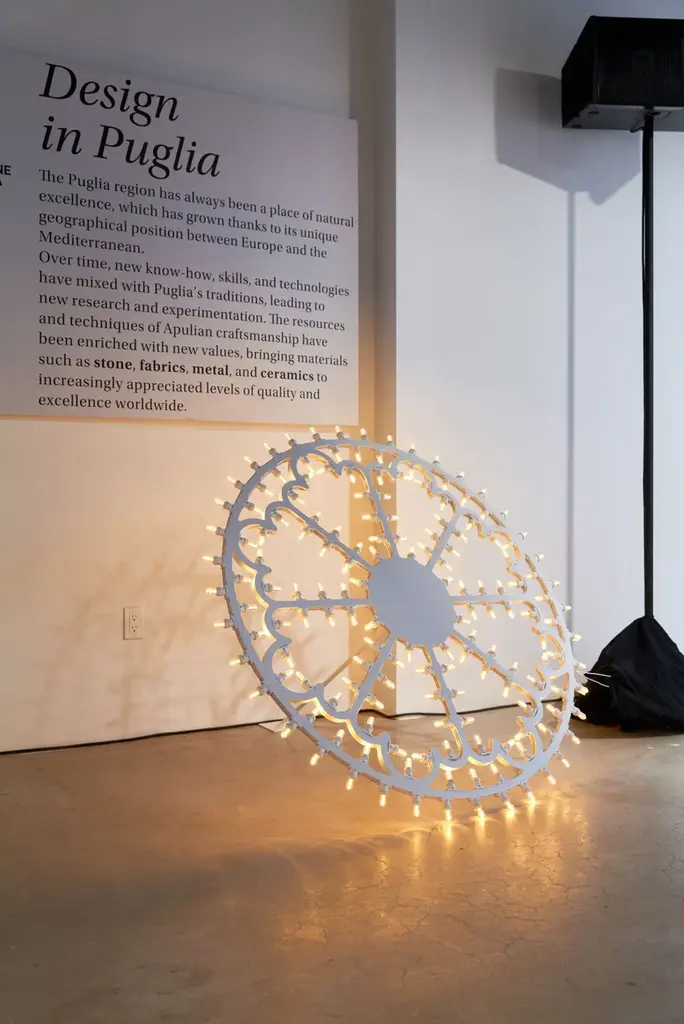 A wooden Luminaria designed for the Autentico installation project, curated by Archiproducts for the Puglia region in 2023 for BDNY. An elegant fusion of tradition and modernity, this luminaria represents Apulian culture revisited in a contemporary key, turning into a refined decorative element for any space.Featuring a freestanding design, the luminaria becomes a focal point in any room, enhancing the beauty of local craftsmanship. The back of the product features the Archiproducts brand engraving, a detail that guarantees the authenticity and quality of the artifact.The design of the rosettes, inspired by Apulian Romanesque style cathedrals, is meticulously reproduced, giving the luminaria a unique and timeless charm.The Luminaria is a handcrafted product made entirely in Italy by MarianoLight and the wood on which the lamp holders are mounted is hand painted.Technical features:n° lamps: 160watt: 48 Wtension: DC 12 Vinsulation class: I (appliance) II (power supply)degree of protrection: IP 20 (appliance) IP 67 (power supply)Type of lamps: LED E14 at 14 V and 0,3 WThis device complies with FCC Part 15 requirements.All elements meet EAC directives.