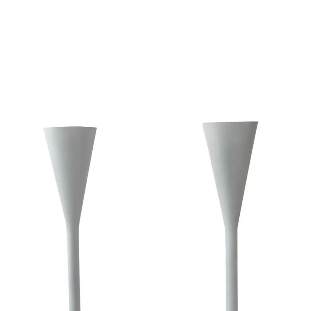 Floor lamp designed by Pietro Chiesa in 1933 and produced by Fontana Arte. The Luminator was for its time a groundbreaking design, and considered to be the first indirect light floor lamp in design history. The lamp is completely built up in metal, consisting of a stem that widens into a cone. The color can be best described as a very light grey, with a hint of blue. The finish is not smooth, but has a relief to it. Light source: E14 Screw-in halogen or incandescent bulb. Can be used on the US electric grid after a plug change. I have official proof of authenticity such as vintage catalogs, designer records, or other literature sources and take full responsibility for any authenticity issues arising from misattribution, European Plug (up to 250V).The wiring of this item may be original and might need replacement, if not specified otherwise.