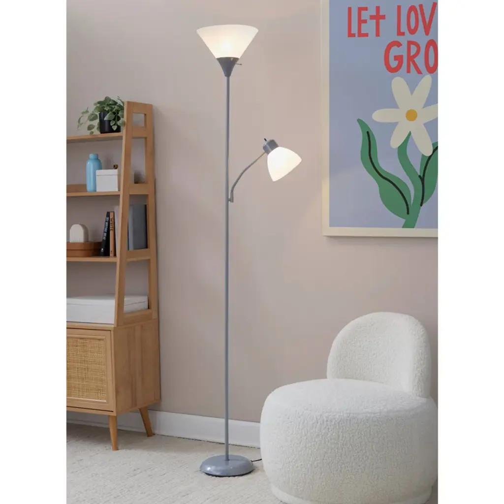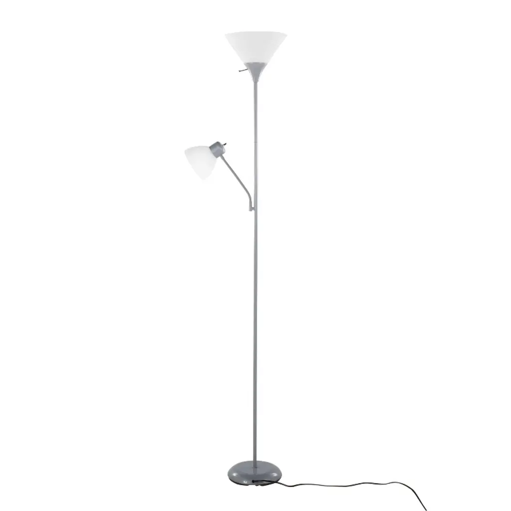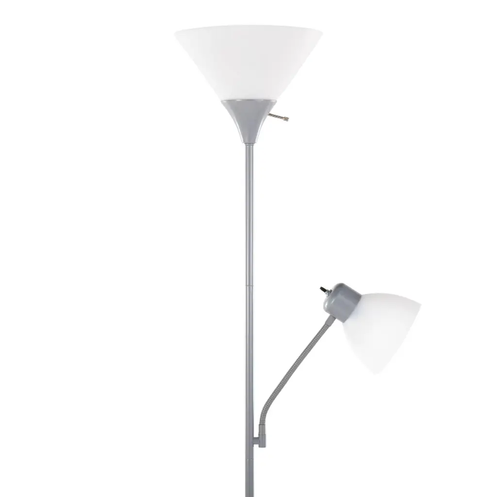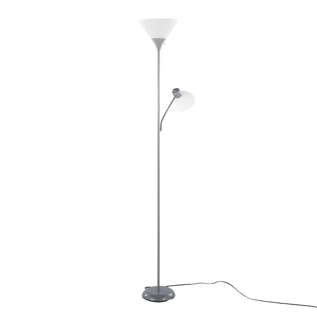 The Dual Pix Metal Floor Lamp from Grandview Gallery by LumiSource brings a sleek, modern touch to any living space. Featuring a dual-head design with adjustable arms, this versatile lamp allows you to direct light exactly where you need it - whether illuminating a reading nook or adding a warm glow to your living room. Crafted from durable metal in a silver finish, the Dual Pix is a functional yet visually striking addition to your home decor.