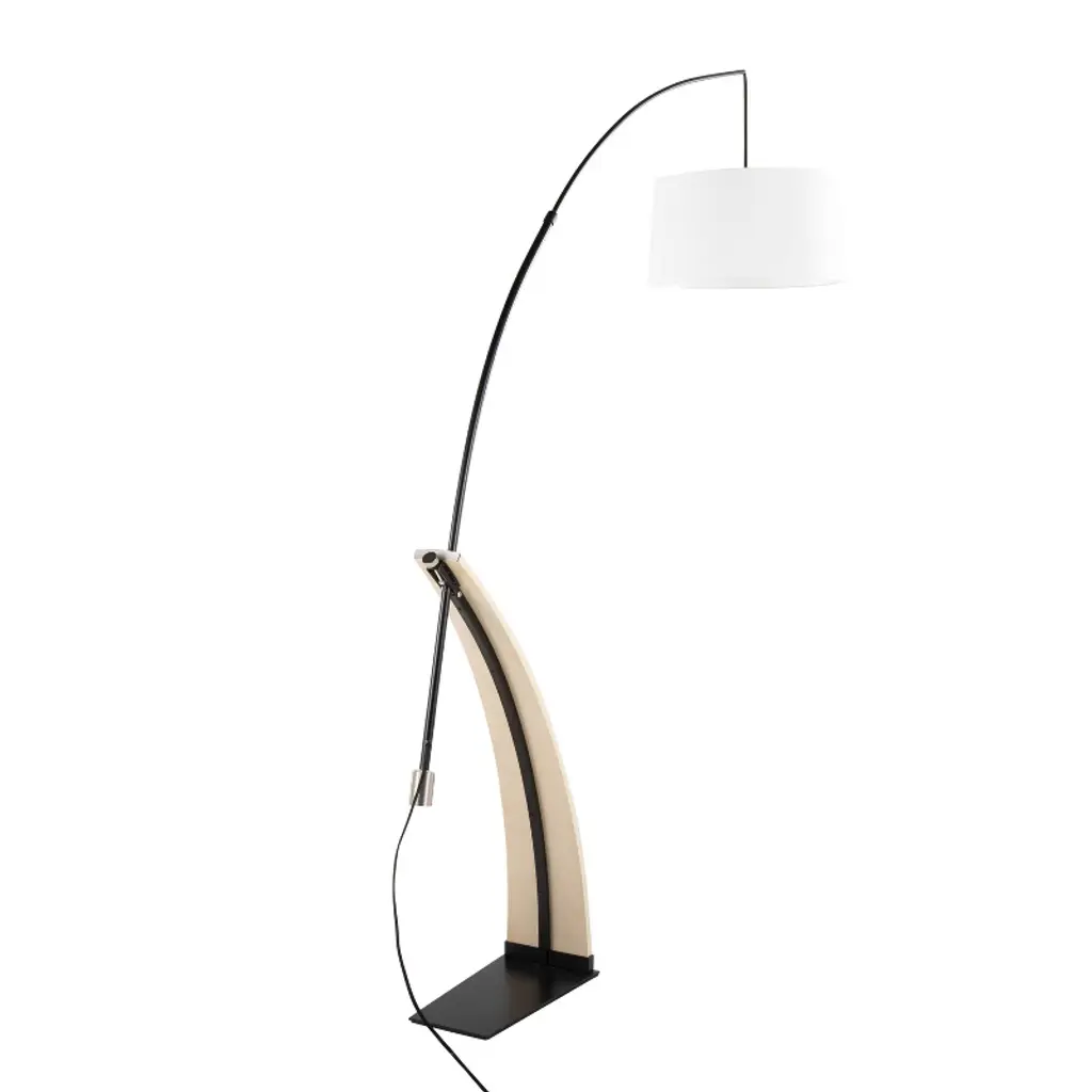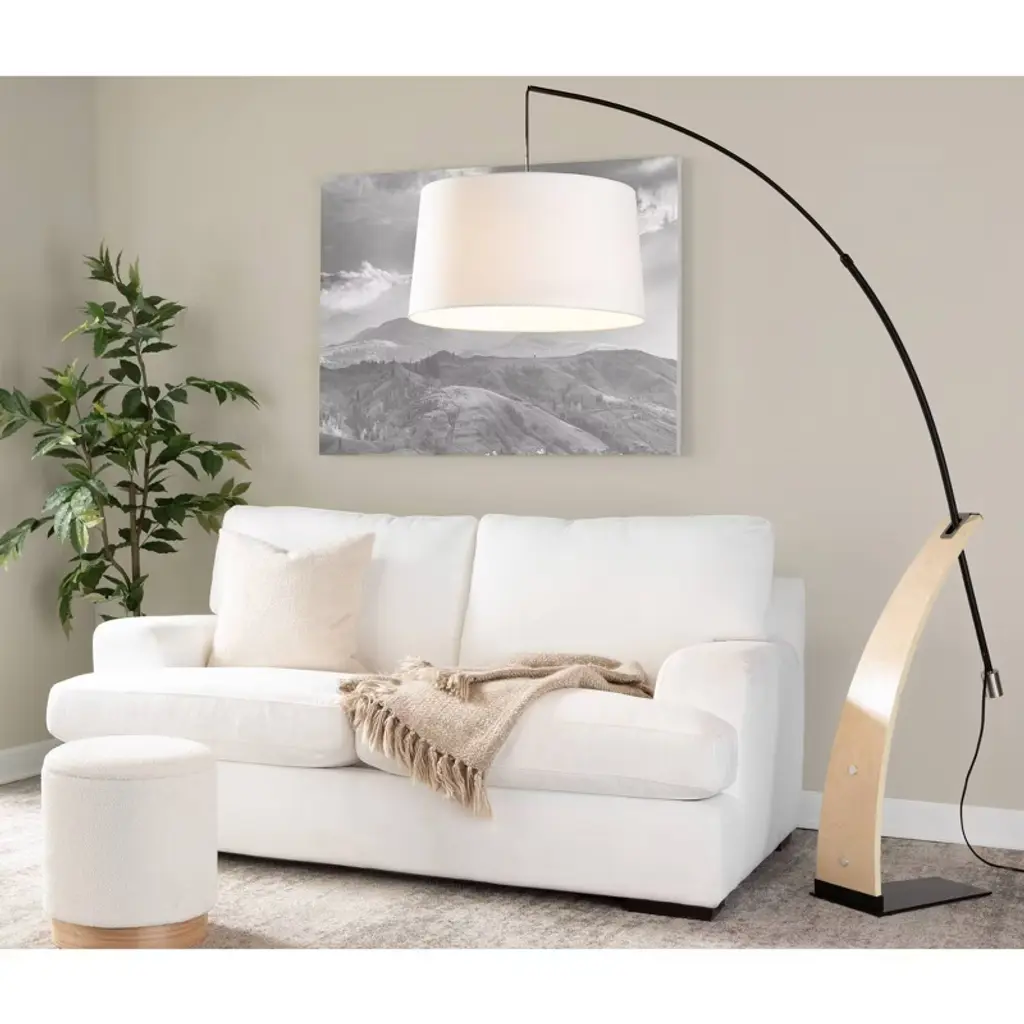 With a unique design all of its own, the LumiSource Robyn Floor Lamp is the perfect piece to set off any living area. Ultra sleek with an arched metal neck complimented by a stylish bent wood base and a sleek white linen shade, providing mid-century modern appeal. This beatiful statement piece will elevate any space!