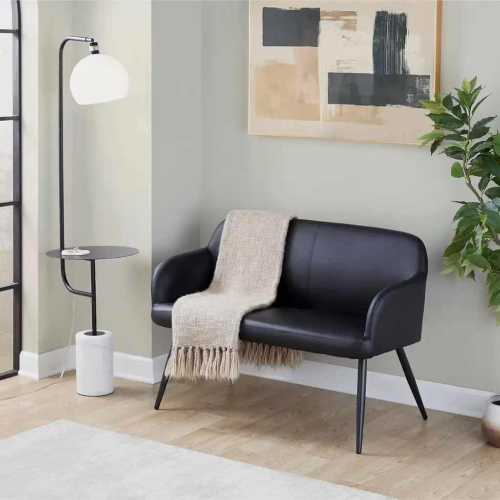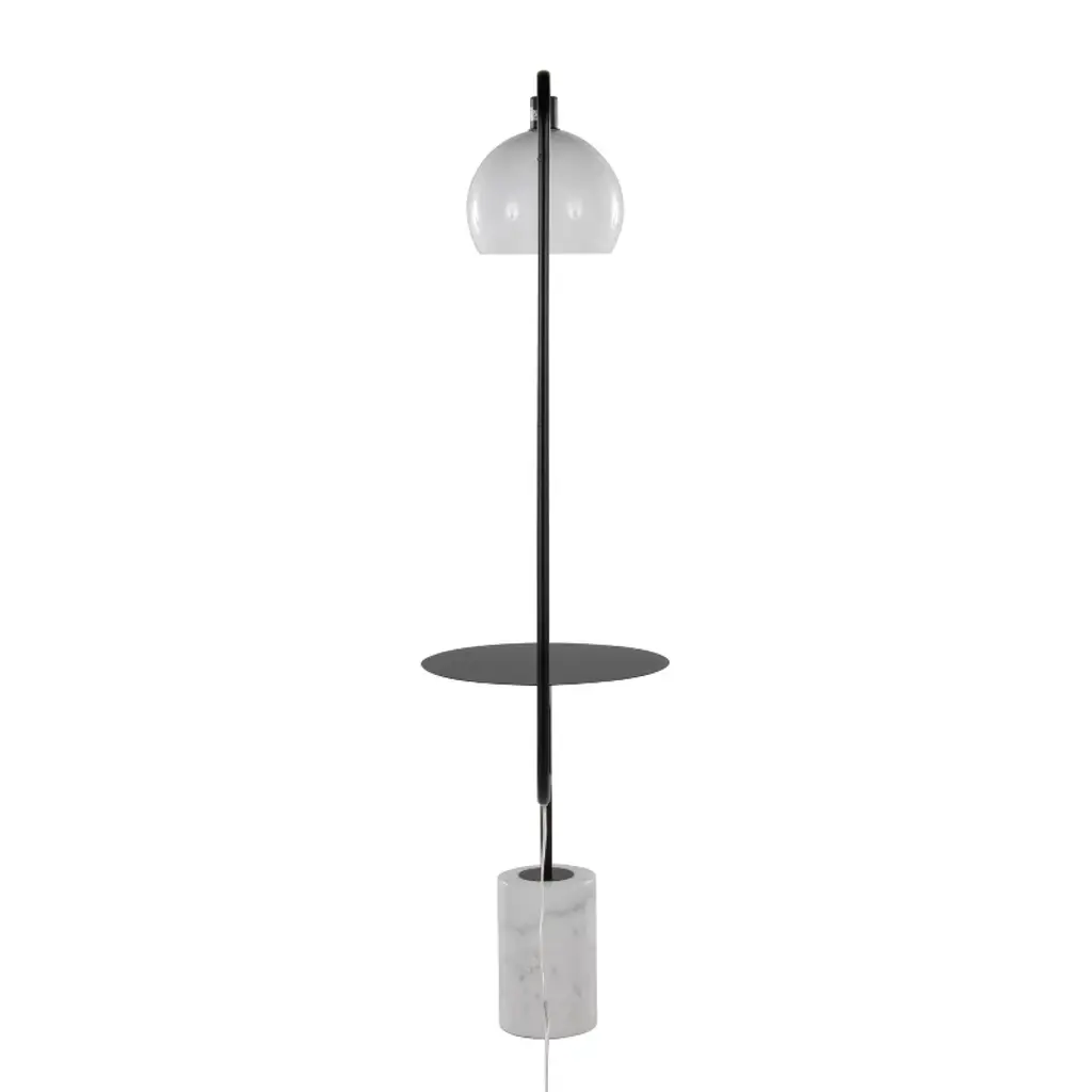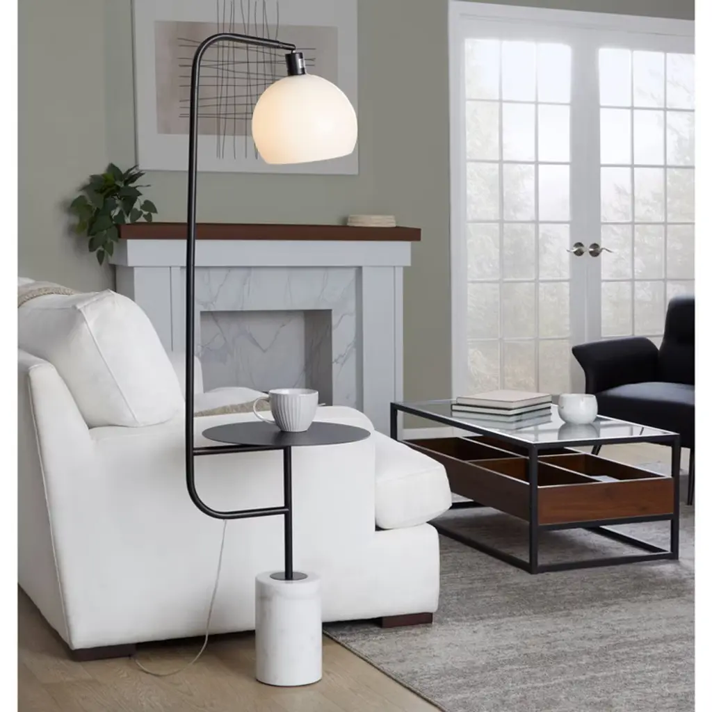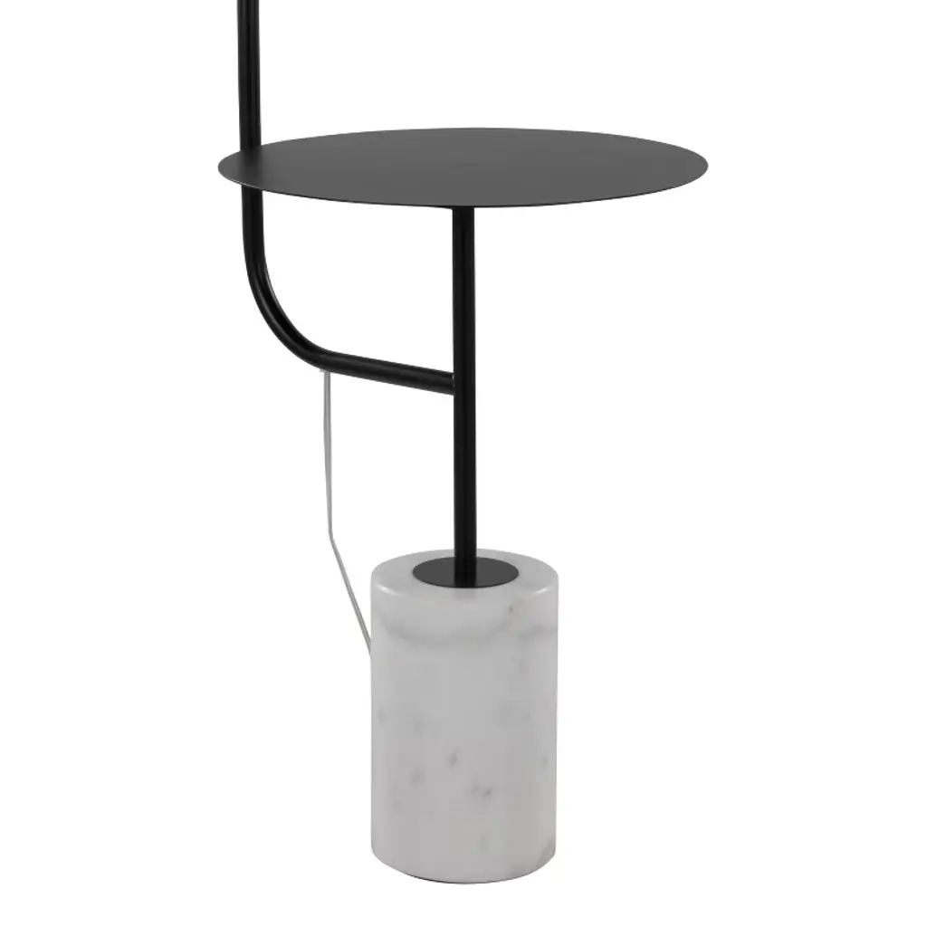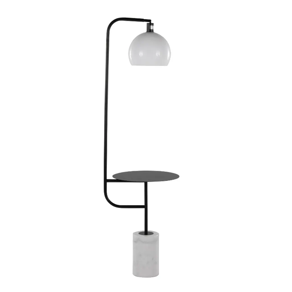 A mix of marble and metal creates a contemporary look that will fit any room. The Symbol Floor Lamp by Lumisource is the perfect size for smaller spaces. With a black metal attached table, white round sconce, and a white marble base, the Symbol Floor Lamp will look great next to any sofa, accent chair, or even in a bedroom.
