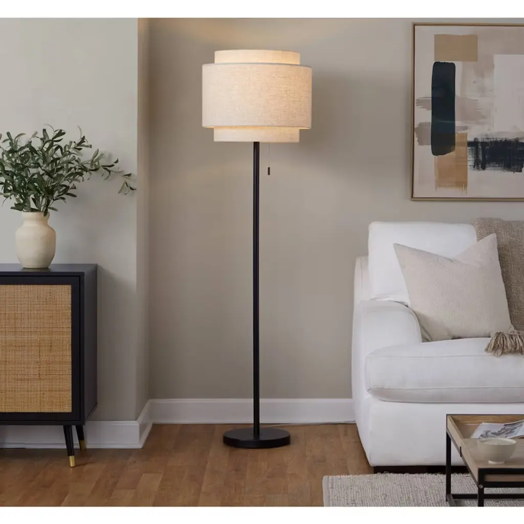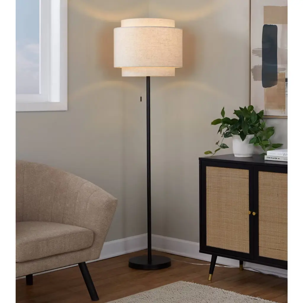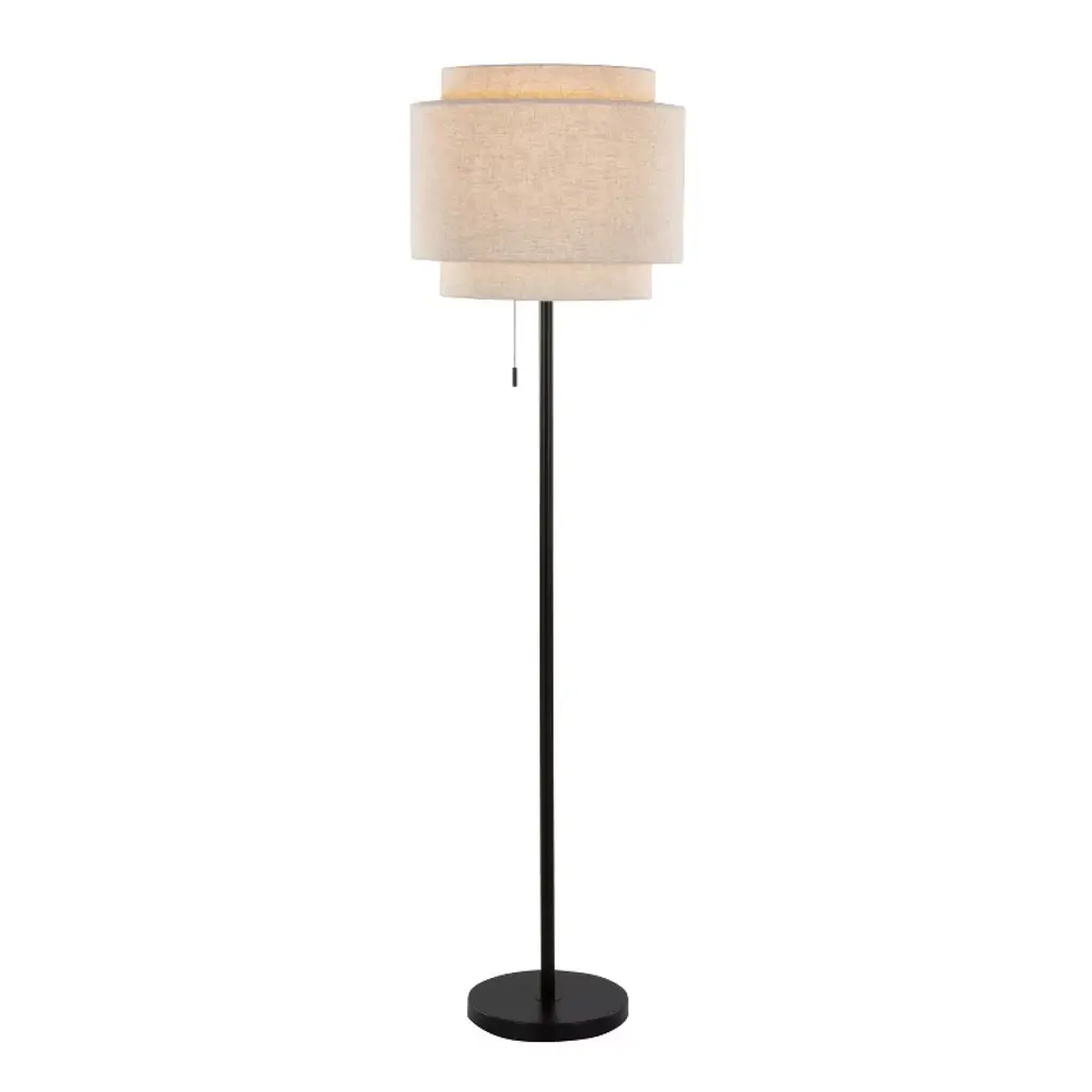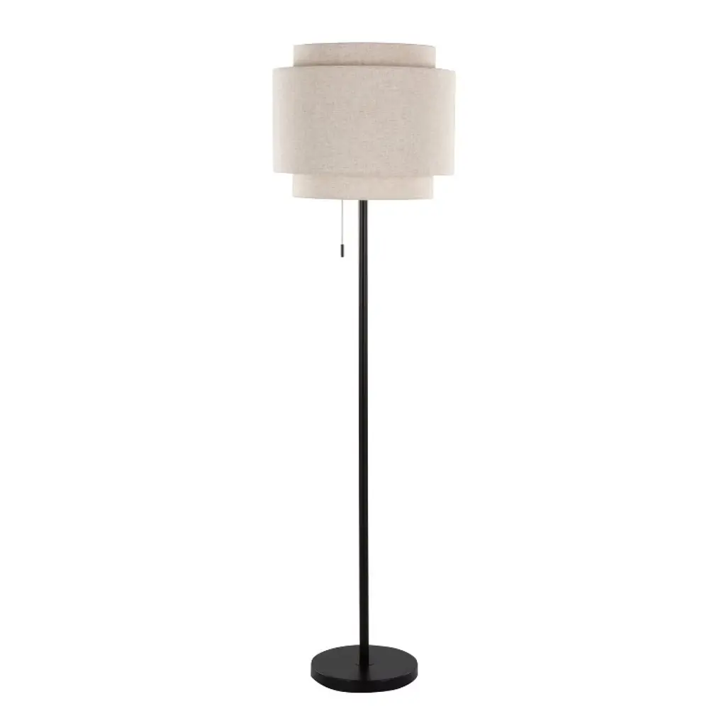 Illuminate your home with the Tier Floor Lamp by LumiSource. Featuring a sleek metal frame with a tiered linen shade and pull-chain switch, this lamp will add style and warmth to space. Place in you living room, office, or bedroom for some minimalist flair. Available in various colors, choose the one that fits your space best!