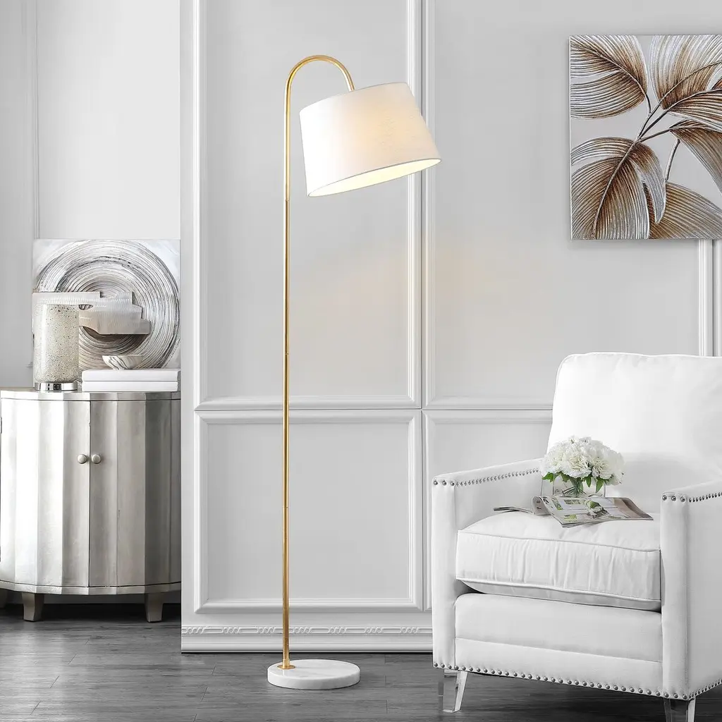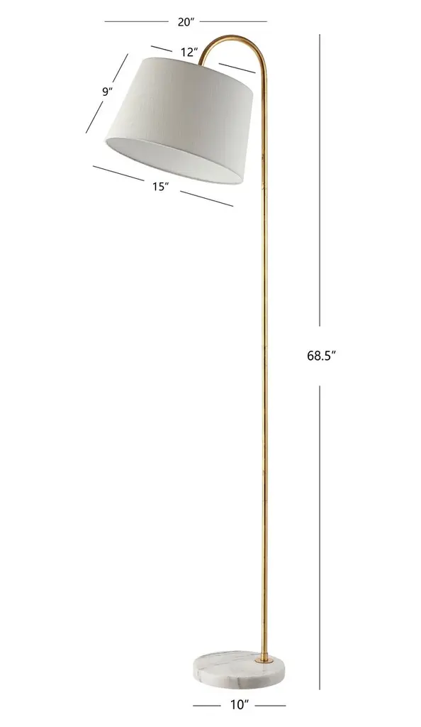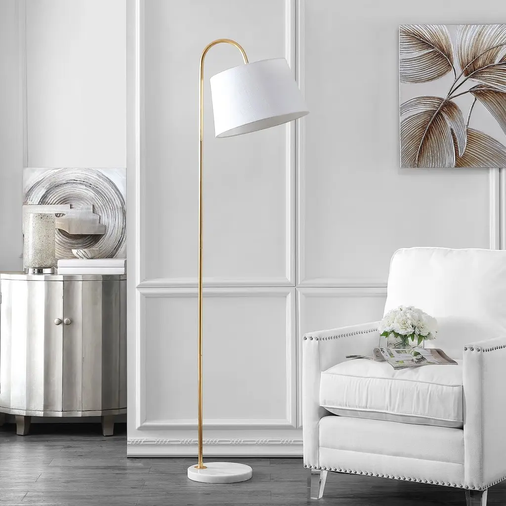With its marble base and gold-leaf finish, this floor lamp brings quiet glamour to its surroundings.