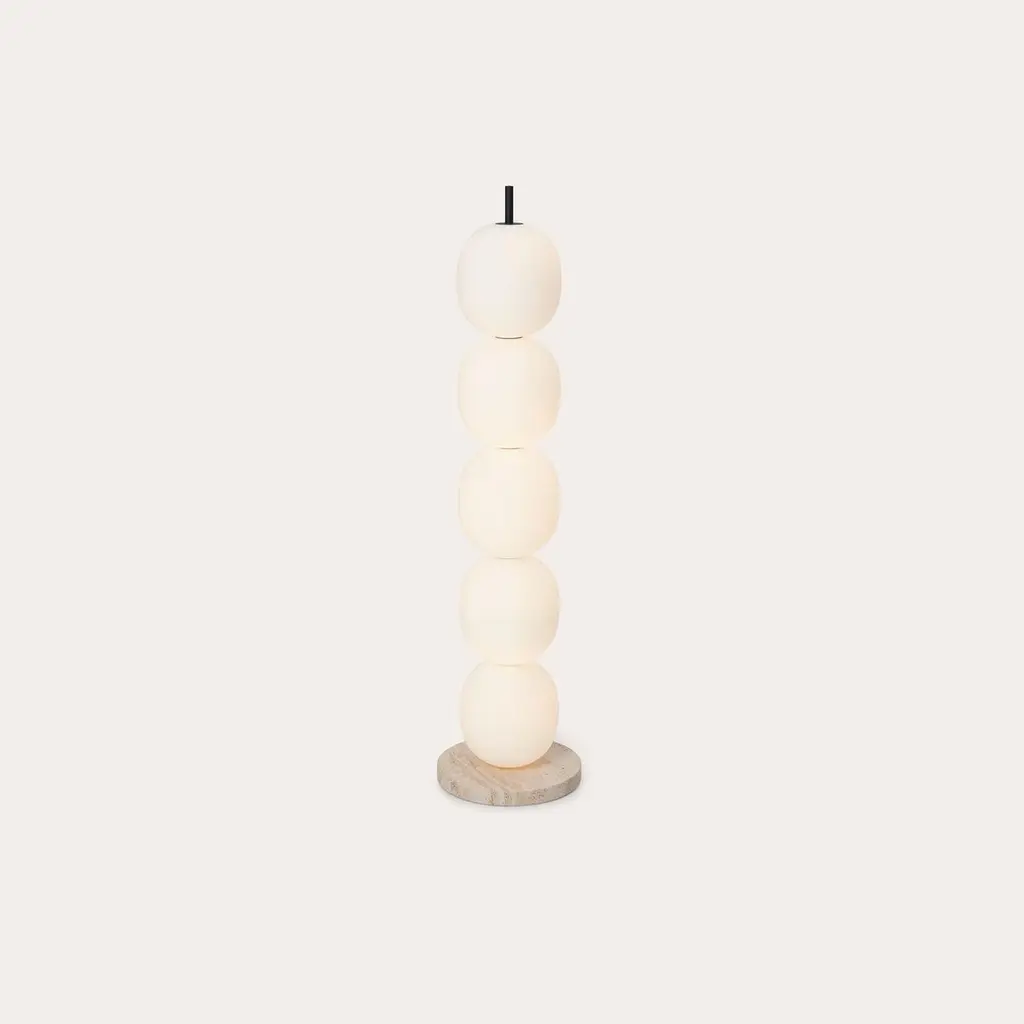 Mainkai, or Main River Quay in English, is the riverside boulevard in Frankfurt, Germany, close to where designer Sebastian Herkner grew up and still calls home today. The spherical fishing floats and mooring buoys that bob along the river with an ethereal glow at night inspired the Mainkai lamps' design.Mainkai is made by craftsmen in Germany not far from the boulevard it is named after. The lamp’s integrated button on the top stem dims the glow of its hand-blown glass globes up and down seamlessly as the tide. The LED light has a medium colour temperature of 2700K. The base in available in Nero Marquina marble or honed Travertine.