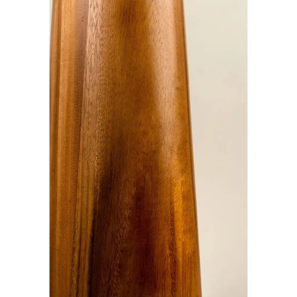 Malva Contemporary Parota Wood Floor Lamp with Linen Shade by Isabel MoncadaDimensions: Ø 50 x H 160 cm.Materials: Turned parota wood, fiberglass and linen.The cone is a balanced geometric figure. Malva is minimalist, with stable and sturdy wood. The lampshade is just slightly broader at the bottom than it is at the top, so it maintains the conic silhouette brought by the base. Its simplicity adds to its presence. Turned parota wood and lampshade with fiberglass and linen.All our lamps can be wired according to each country. If sold to the USA it will be wired for the USA for instance. Please contact us. Isabel Moncada is a Mexican designer specialized in lighting.By exploring and finessing traditional manufacturing techniques, Isabel has developed her own mechanisms and transformed materials to improve her designs as well as carve out her personal style.