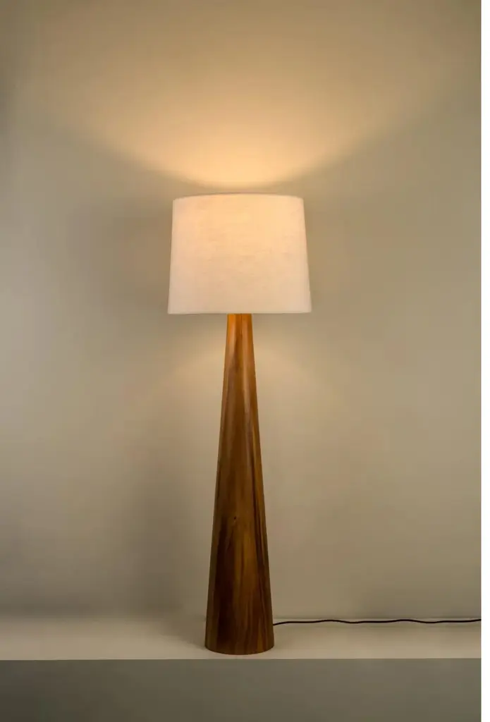 Malva Contemporary Parota Wood Floor Lamp With Linen Shade By Isabel Moncada