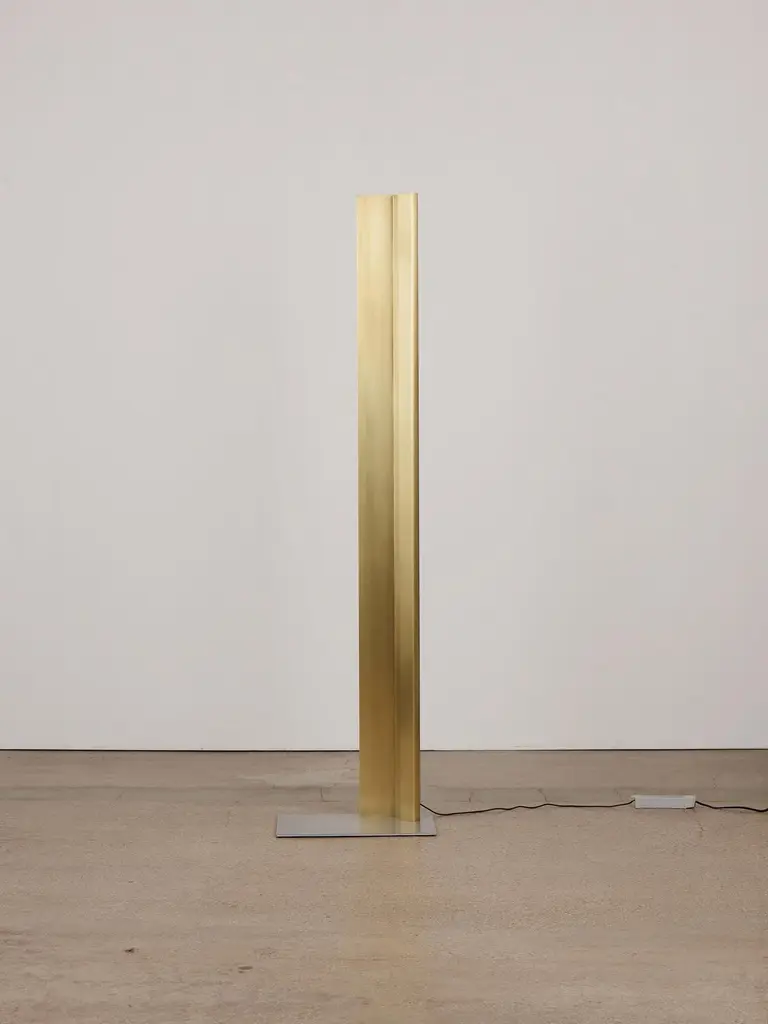 Mano Standing LampDimensions: 18"D x 12"W x 73"HFinishes offered: Polished Brass (Mirror Outside / Brushed Inside) Aluminum Base, Fine Satin Stainless Steel