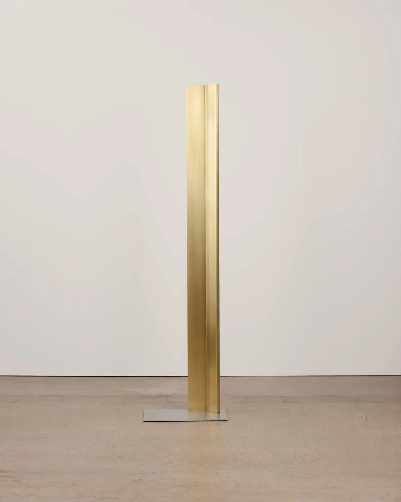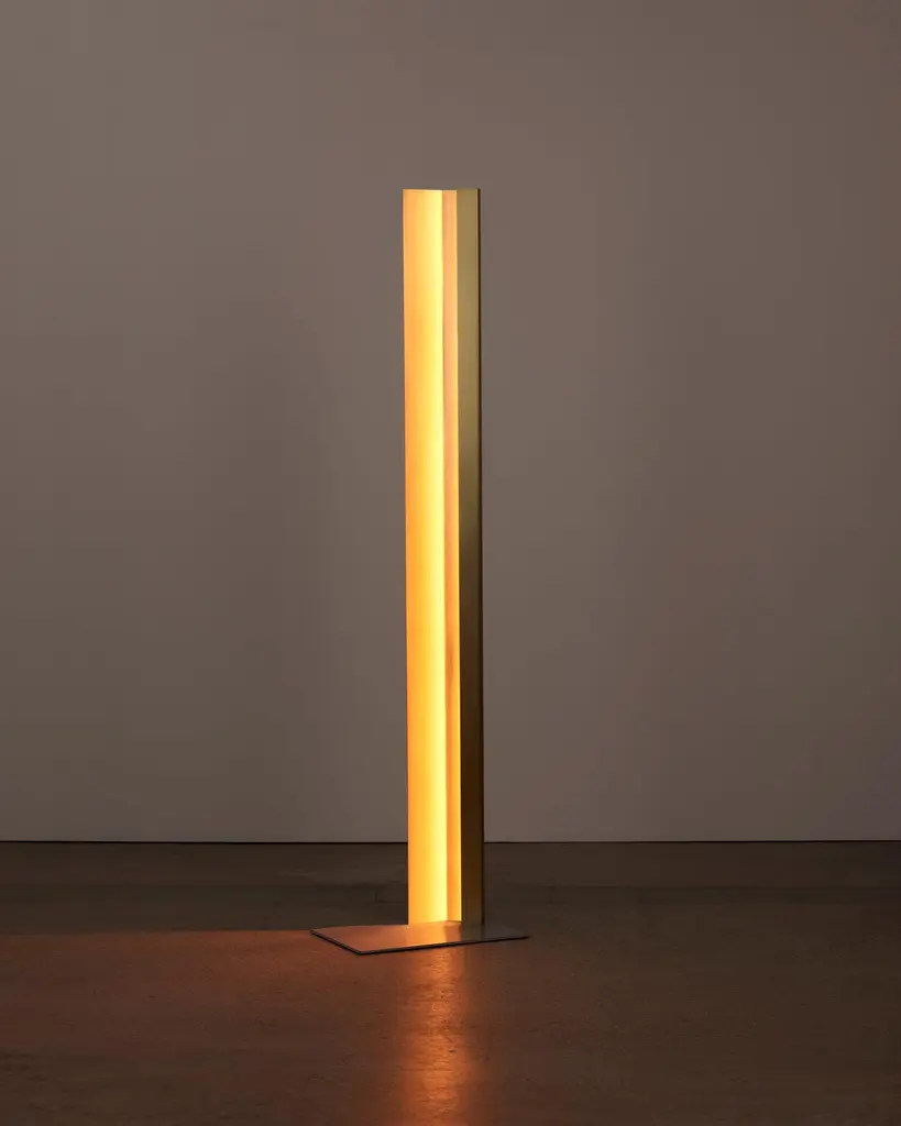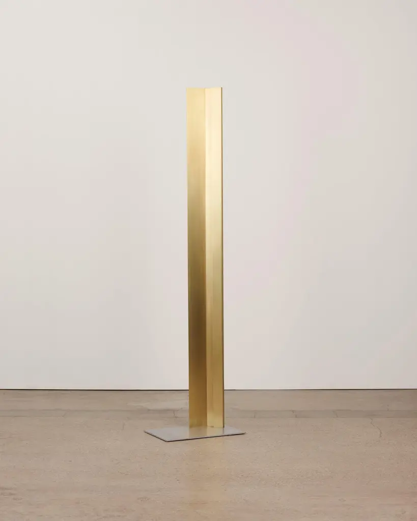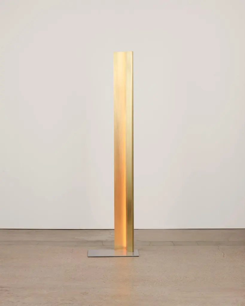 Mano standing lamp by Umberto Bellardi Ricci.Dimensions: D 18" x W 12" x H 73 in.Materials: Brass, Aluminium base, Led strip.All our lamps can be wired according to each country. If sold to the USA it will be wired for the USA for instance.Umberto Bellardi Ricci is an Italian sculptor and architect based in New York City, practicing across London, Mexico, and New York. His work revolves around the interplay of art and design while exploring the spatial aspects of sculpture and social sciences through the medium of architecture. Umberto initially started with geometric abstraction largely interpreted in cast concrete, influenced by his Japanese mentor and Mexican modernism, as he founded an acclaimed sculptural project in Las Pozas, the surrealist garden in central Mexico. Since he relocated to New York, he has been focusing on a series of folded steel and brass sculptures, that often incorporate reflective light sources. While he still works with abstract compositions, pairing ready-made materials with crafted wood and rubber details, his latest furniture pieces explore the dialogue between contrasting raw construction elements, such as I-beams or concrete blocks, and refined textures like marble and glass. Having taught architecture for many years at the Architectural Association in London and at the Cornell University in New York, he designed the home for Turner Price laureate Laure Prouvost in Hackney, and has recently been commissioned to make objects and furniture for Jenna Lyons’ studio in Soho.