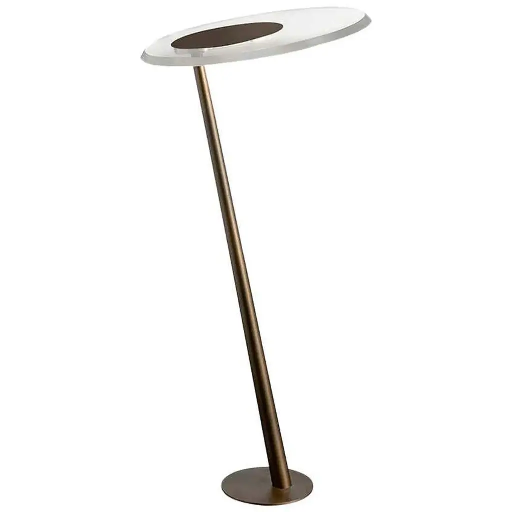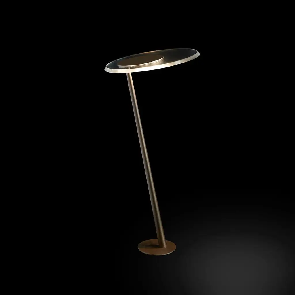 Outdoor lamp 'Amanita' designed by Mariana Pellegrino in 2019. Outdoor led lamp giving direct light in painted metal with sloped conical stem. Indian brown finish. PMMA transparent diffuser disk. Manufactured by Oluce, Italy.Amanita is a reading lamp by Mariana Pellegrino Soto consisting of two discs: the first, the slimmest, functions as the base, while the second and thicker of the two houses the LED bulb. The two metal discs are connected and spaced by a slim, oblique stem in the shape of a ‘Z’.The same design, with revised proportions and modified materials and finishes, is also offered in its outdoor version. Amanita is transformed from reading lamp to an elegant outdoor path-light. The Indian brown finish of this version, together with its stylish silhouette, make it an object destined to grace the most refined gardens and public spaces.Materials and color:MetalPMMA transparent Indian brown finishDimensions:D 31 cm x W 31 cm x H 68 cmTechnical information:1 x max 6 W (LED) Founded in 1945, Oluce is the oldest Italian design company in the lighting sector still in operation today. Oluce lighting’s design aesthetic is crisp, linear, and decorative. A subtle, intellectual beauty that over the years has led the company to produce some of the more recognizable and admired iconic lighting in the world. Oluce, already participating at the 9th Triennale in Milan, throughout its long history, has received numerous acknowledgements including two Golden Compass awards, two Design Awards and the Gold Medal at the 13th Triennale in Milan. Its lamps appear in the most important permanent design collections worldwide.Oluce’s expertise reveals its unparalleled manufacturing excellence which transforms into objects an untiring technological research into the potential of light. Each lamp is a milestone along this journey. Over time, from unusual materials, original designs and new lighting sources ensued revolutionary iconic designs by Tito Agnoli, Joe Colombo, Marco Zanuso, Ostuni e Forti, and Vico Magistretti, who since the 50s, have been rewriting the history of lighting. Recent collections reaffirm Oluce design and decorative approach, expressed through the signs by Italian and international designers such as Angeletti & Ruzza, Francesco Rota, Nendo, Victor Vasilev, Nicola Gallizia, Christophe Pillet, Mist-o and David Lopez Quincoces.