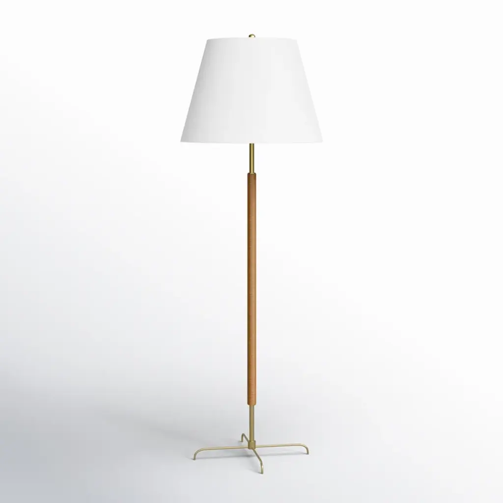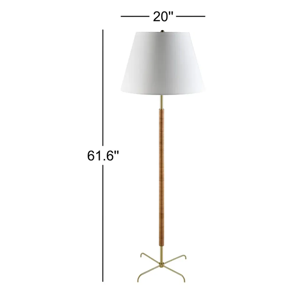 Step into the future of home decor with the Magda accent floor lamp. Embodying minimalist modern style, this sleek yet striking floor lamp is sure to elevate any living space with its clean lines and simplistic elegance. The 62-inch tall body and base are crafted from iron for a sturdy stand that's built to last, while the linen outside shade diffuses light gently, creating a warm and inviting atmosphere in your room. The interior of the shade is lined with polystyrene, which boosts light reflection for enhanced brightness. Topped with an iron finial that adds an extra touch of sophistication, this lamp perfectly merges functionality with high-end design. It's easy to care for too - just wipe it clean with a dry cloth to maintain its fresh and modern look. Avoid harsh cleaners as they may damage the finish, ensuring your lamp stays looking pristine for years to come.