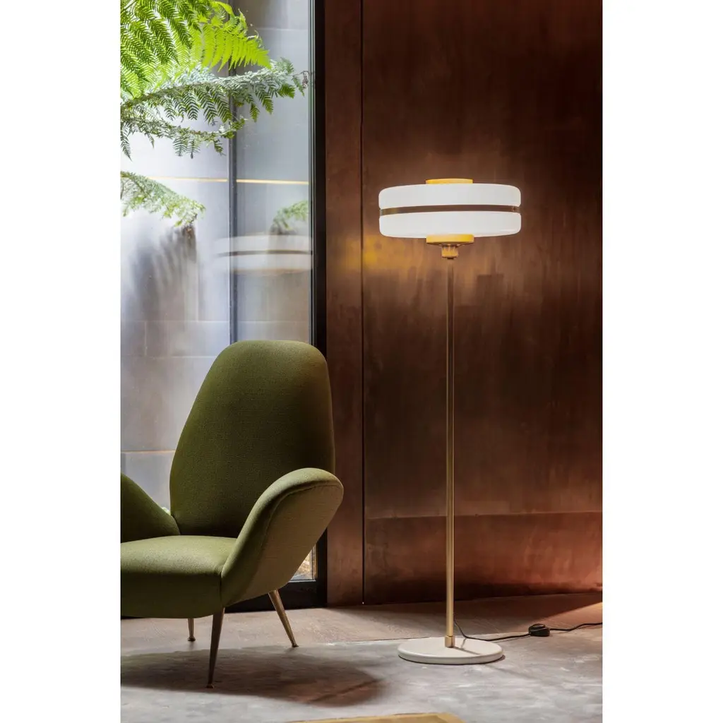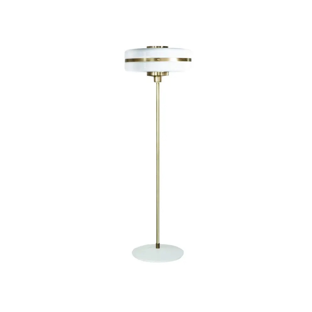 Masina floor lamp by Bert FrankDimensions: 135 x 40 x 22 cmMaterials: Brass, glassWhen Adam Yeats and Robbie Llewellyn founded Bert Frank in 2013 it was a meeting of minds and the start of a collaborative creative partnership with engineering at the core.Both men share a love of design and deep respect for the heritage of British engineering. Both wanted to create high-end products that would Stand the test of time and fly in the face of throwaway consumerism. The partnership has resulted in award-winning lighting and accessories that fuse the integrity of the small-scale workshop with timeless aesthetics reimagined for today.The two men work closely together from concept to end product. Robbie’s imagination and occasional flights of fancy are informed by Adam’s understanding of engineering principles and fabrication techniques. Equally, Adam's designs are often the starting point for a collection. In that sense Bert Frank is a true creative collaboration. As a result, every designed is honed to perfection, every detail carefully considered.