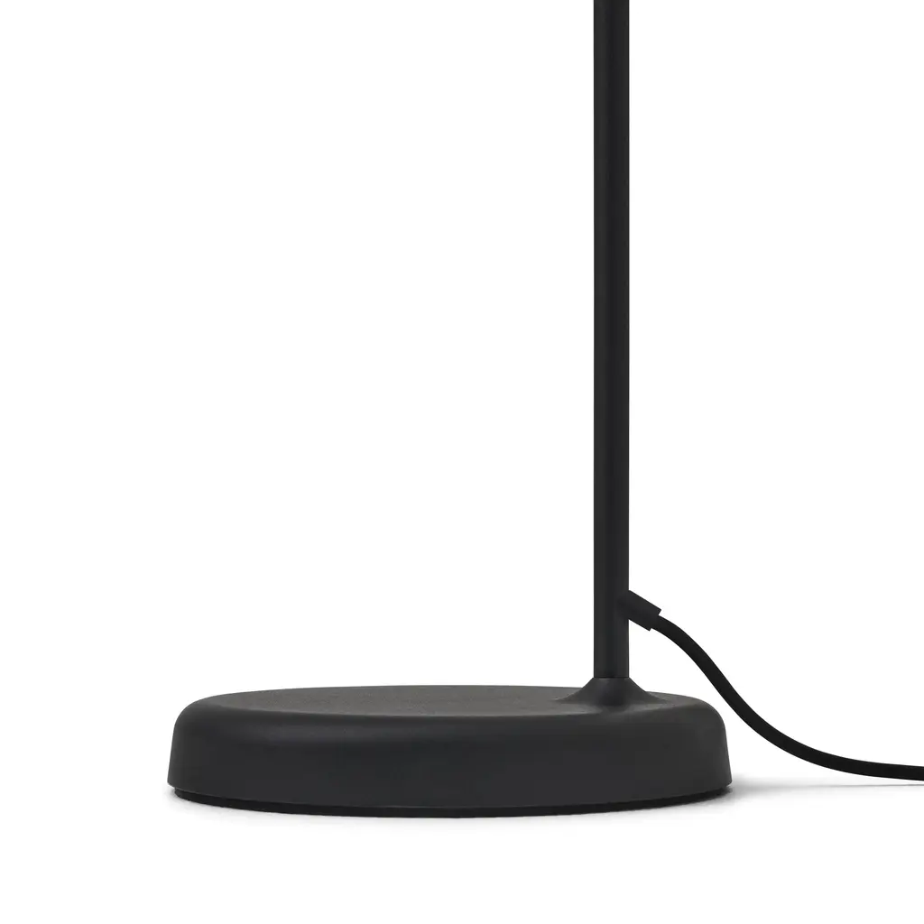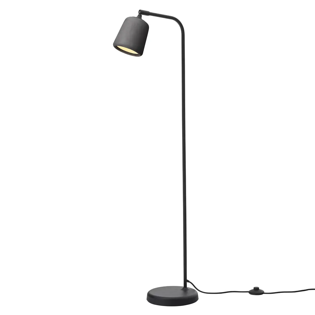 Designers Nørgaard Kechayas essay a floor lamp as the latest family member in the Material series, with its wide selection of shades in diverse renderings—cork, oak, concrete, marble, terracotta, opal glass and stainless steel. The trim black metal stand features a pivoting head that provides adjustable direct illumination, suitable for reading and other meticulous activities, making the light a perfect companion for a lounge chair or sofa.