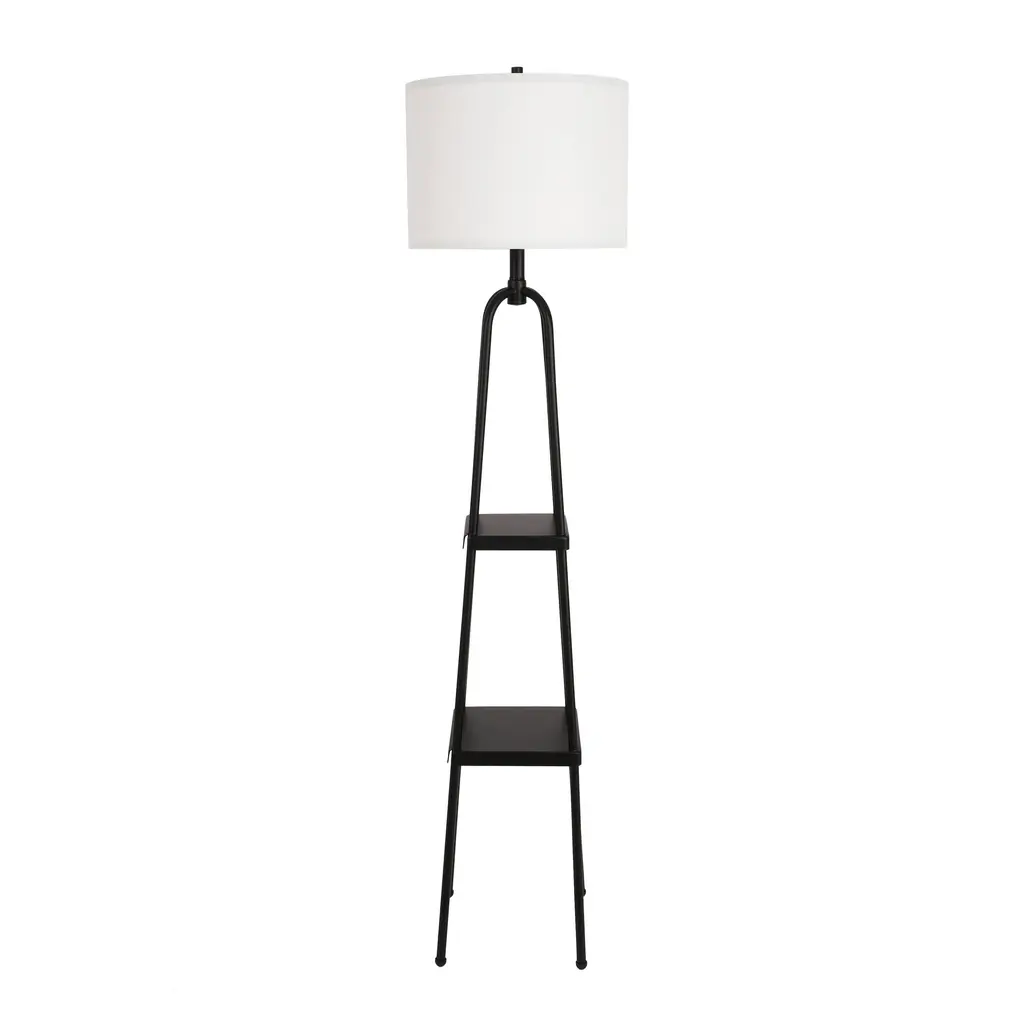 Matte Black Metal Floor Lamp With Shelves - Black