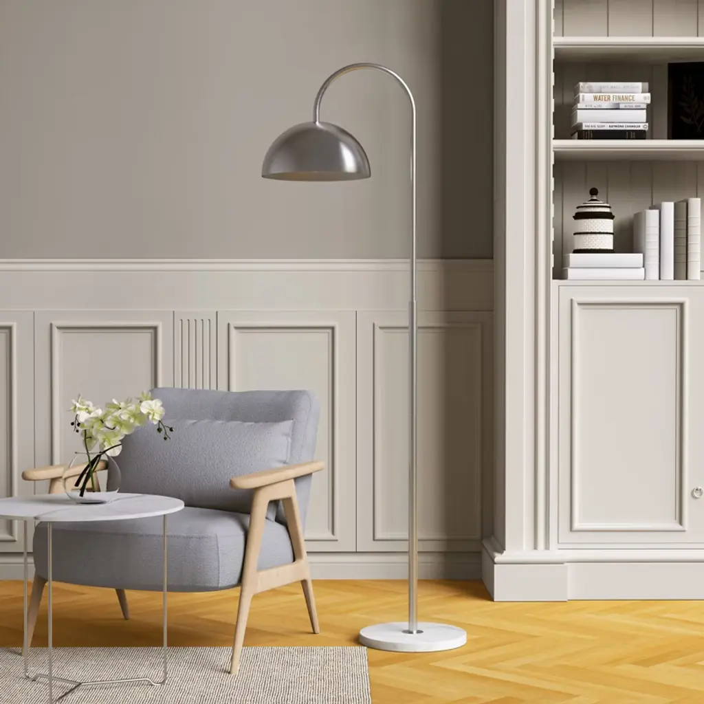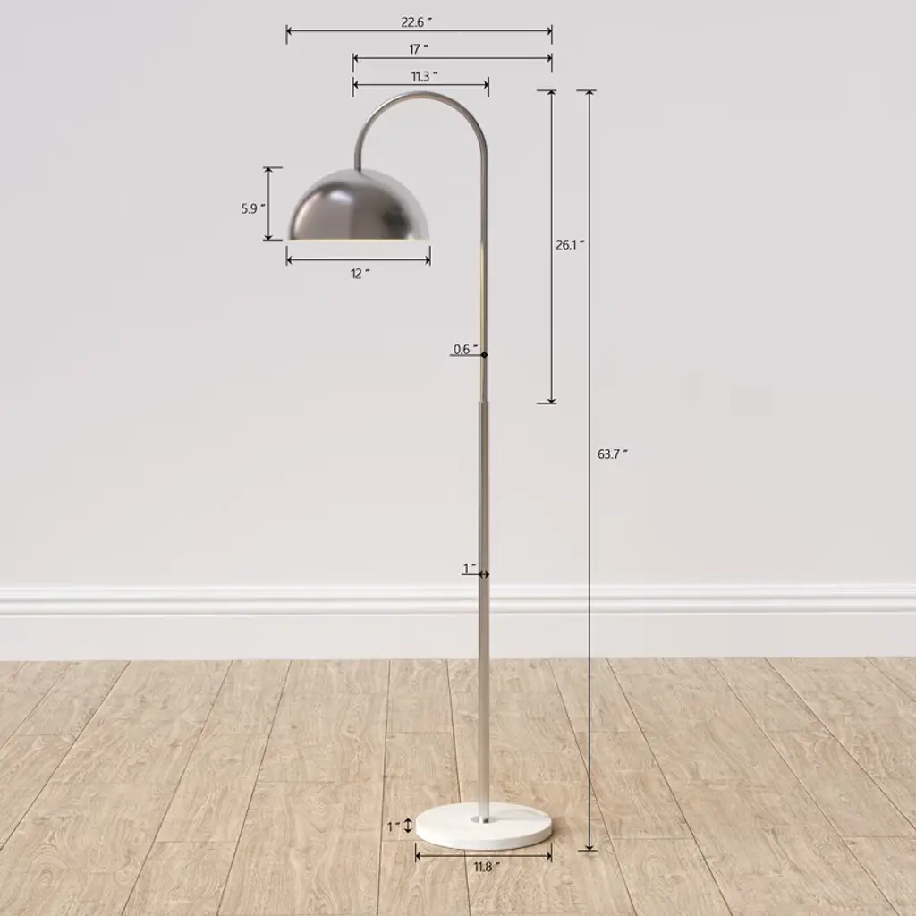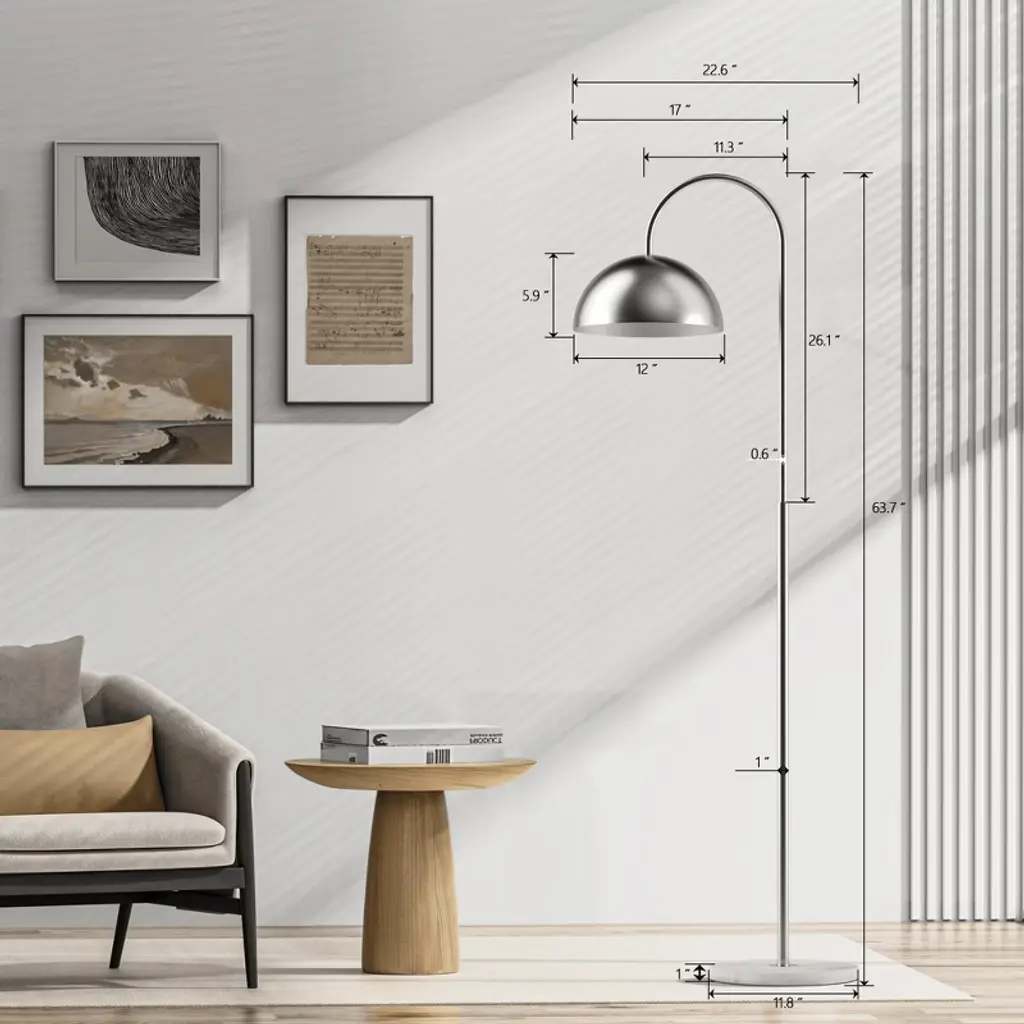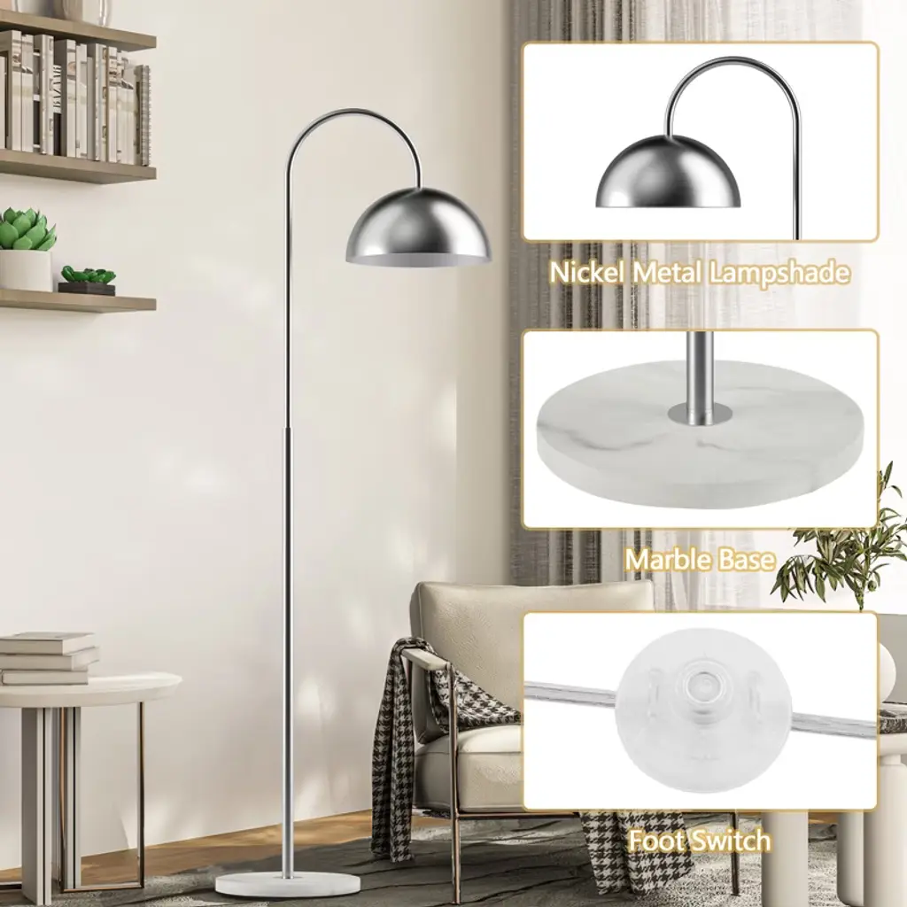 Enhance your bedroom with the Maxax 63.7” Modern Arched Floor Lamp. Featuring a sleek nickel finish and elegant arched design, this standing tree lamp delivers targeted lighting for reading or ambient use. The sturdy base ensures stability, while its contemporary style complements modern interiors. Perfect for bedrooms, living areas, or workspaces, it combines functionality with minimalist design.